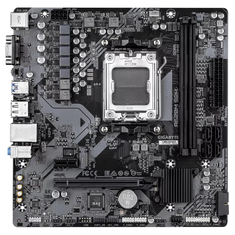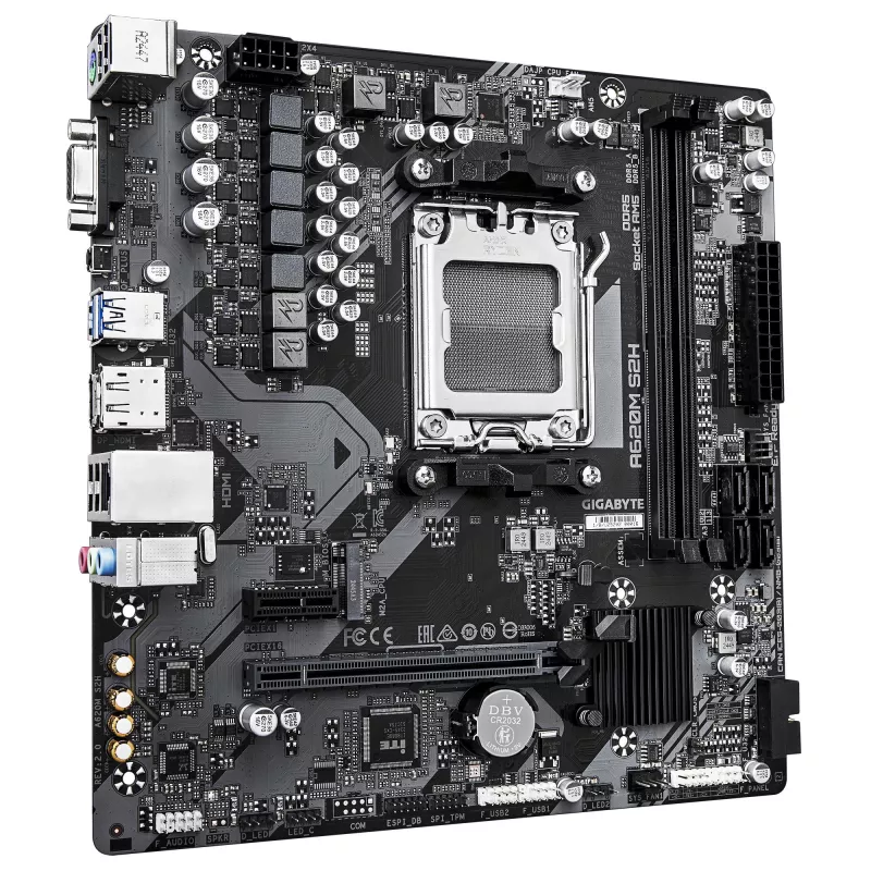 AMD A620 , SAM5 , Micro-ATX , DDR5 , 7600/7200/6800/6600/6400/6200/6000/5600/5200/4800/4400 MHz , Memory slots 2 , Video Depending on CPU , LAN Gigabit , RAID SATA 0, 1, 10; NVMe 0, 1, 10