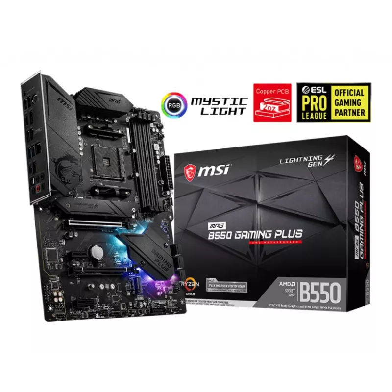 AMD B550 , SAM4 , ATX , DDR4 , 4400/4266/4133/4000/3866/3733/3600/3466/3200/3066/3000/2933/2800/2666/2400/2133/1866 MHz , Memory slots 4 , Video Depending on CPU , Audio Realtek ALC892 , LAN Realtek (Gigabit) , RAID SATA 0, 1, 10 , TPM Header