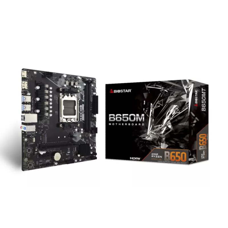 Mainboard, BIOSTAR, AMD B650, SAM5, Micro-ATX, Memory DDR5, Memory slots 2, 1xPCI-Express 3.0 1x, 1xPCI-Express 4.0 16x, 1xM.2,