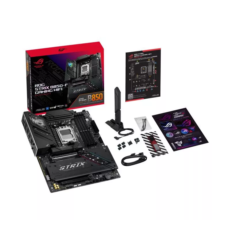 - CABLES 2 X SATA 6GB/S CABLES MISCELLANEOUS 1 X ASUS WIFI Q-ANTENNA 1 X CABLE TIES PACKAGE 1 X M.2 Q-LATCH PACKAGE 1 X M.2 Q-SLIDE PACKAGE 1 X ROG KEY CHAIN 1 X ROG STRIX STICKERS 4 X M.2 RUBBERS DOCUMENTATION 1 X QUICK START GUIDE