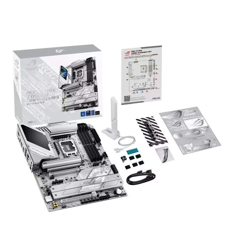 - CABLES: 2 X SATA 6GB/S CABLES ADDITIONAL COOLING KIT: 1 X THERMAL PAD FOR M.2 22110 MISCELLANEOUS: 1 X ASUS WIFI Q-ANTENNA 1 X CABLE TIES PACKAGE 1 X M.2 Q-LATCH PACKAGE 1 X ROG KEY CHAIN 1 X ROG STRIX STICKERS 5 X M.2 RUBBERS DOCUMENTATION: 1 X QUICK STA