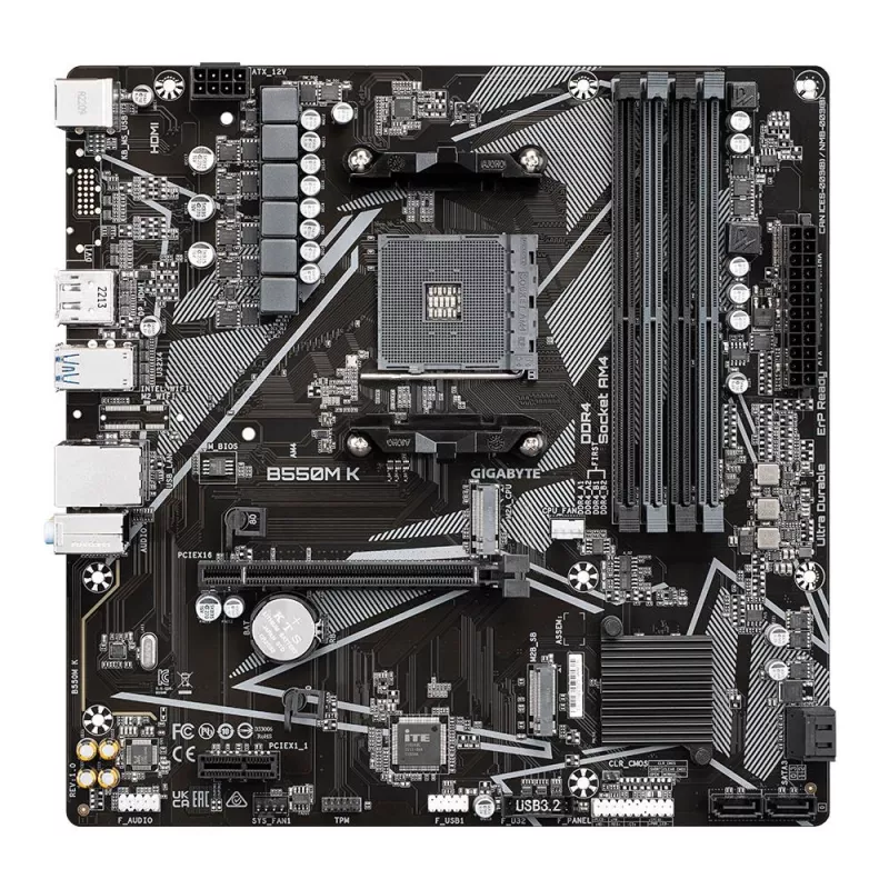 Mainboard, GIGABYTE, AMD B550, SAM4, Micro-ATX, Memory DDR4, Memory slots 4, 1xPCI-Express 3.0 1x, 1xPCI-Express 4.0 16x, 2xM.2