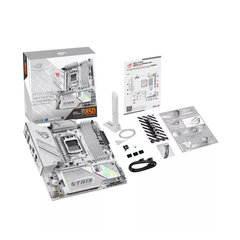 - CABLES 2 X SATA 6GB/S CABLES MISCELLANEOUS 1 X ASUS WIFI Q-ANTENNA 1 X CABLE TIES PACKAGE 1 X M.2 Q-LATCH PACKAGE 1 X ROG KEY CHAIN 1 X ROG STRIX STICKERS 3 X M.2 RUBBERS 1 X SCREW PACKAGE FOR M.2 SSD DOCUMENTATION 1 X QUICK START GUIDE