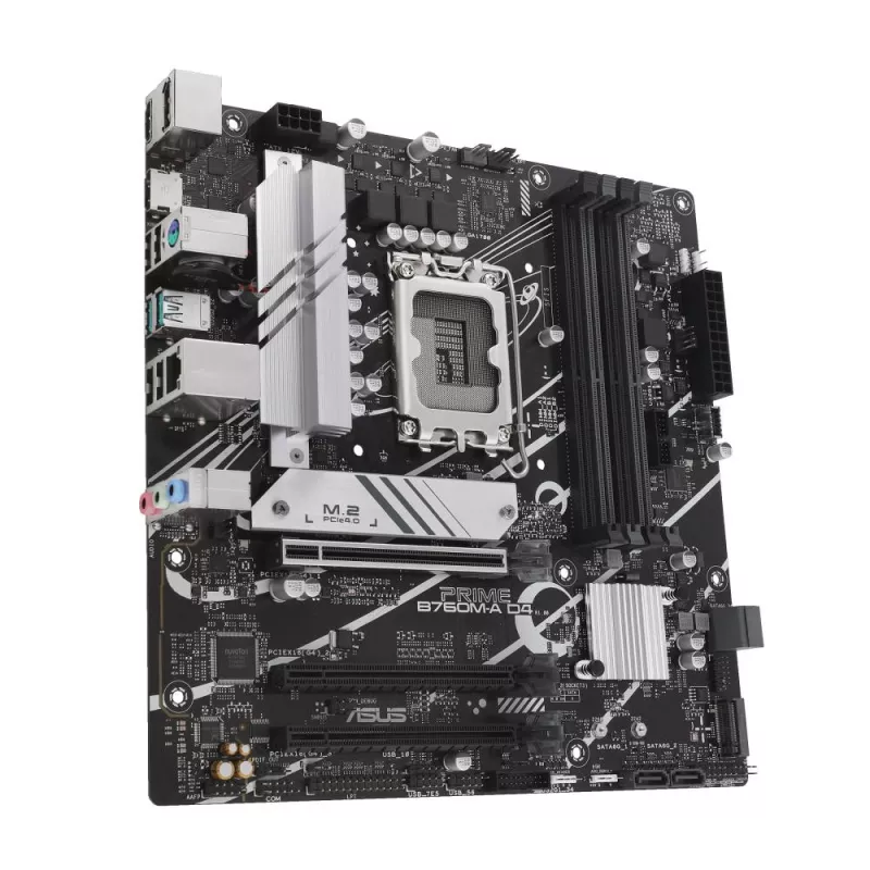 Intel B760 Express , LGA1700 , Micro-ATX , DDR4 , 5333/5066/5000/4800/4600/4400/4266/4000/3733/3600/3466/3400/3333/3200/3000/2933/2800/2666/2400/2133 MHz , Memory slots 4 , Video Depending on CPU , LAN 2.5 Gigabit , Audio , RAID SATA 0, 1, 5, 10 , TPM Header