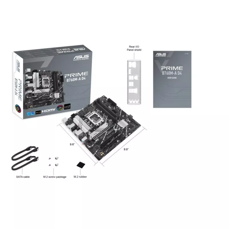 Mainboard, ASUS, Intel B760 Express, LGA1700, Micro-ATX, Memory DDR4, Memory slots 4, 1xPCI-Express 4.0 16x, 2xM.2, 1xHDMI, 1xD