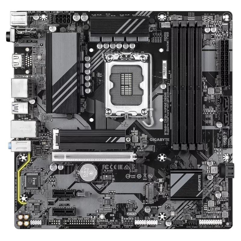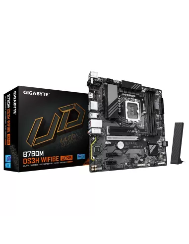 - GIGABYTE B760M DS3H WIFI6E GEN5 MOTHERBOARD - SUPPORTS INTEL CORE 14TH GEN CPUS, 6+2+1 PHASES DIGITAL VRM, UP TO 5600MHZ DDR5, 2XPCIE 4.0 M.2, WI-FI 6E, 2.5GBE LAN, USB 3.2 GEN2. PROCESSOR MANUFACTURER: INTEL, PROCESSOR SOCKET: LGA 1700, COMPATIBLE PROCES