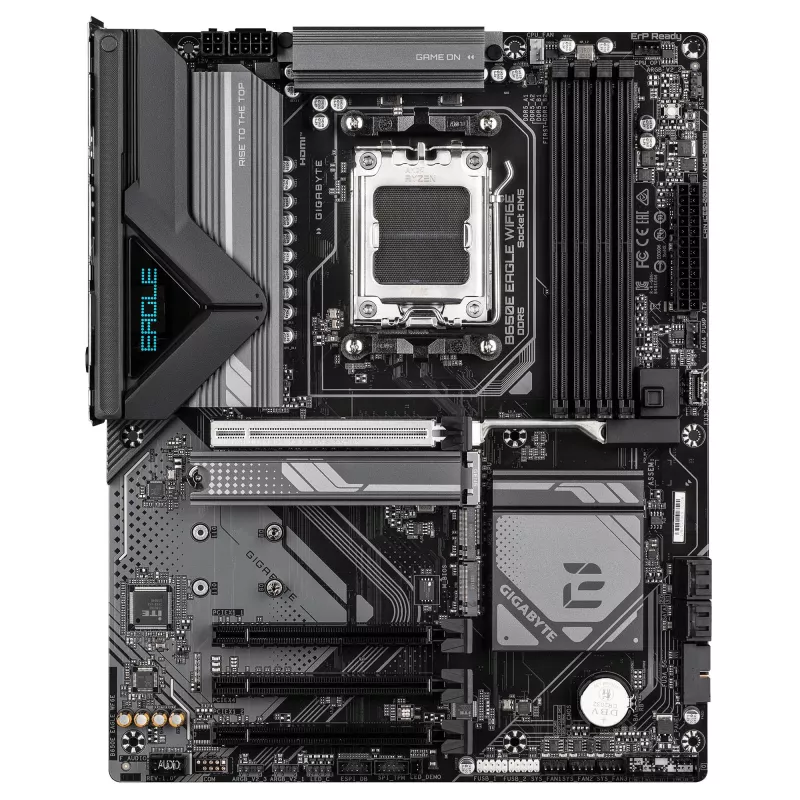 GIGABYTE B650E EAGLE WIFI6E MOTHERBOARD - AMD RYZEN 9000 SERIES CPUS, 8+2+2 PHASES VRM, UP TO 8200MHZ DDR5 (OC), 1XPCIE 5.0 + 2XPCIE 4.0 M.2, 2.5GBE LAN, WIFI 6E, USB 3.2 GEN 2. PROCESSOR MANUFACTURER: AMD, PROCESSOR SOCKET: SOCKET AM5, COMPATIBLE PROCESS