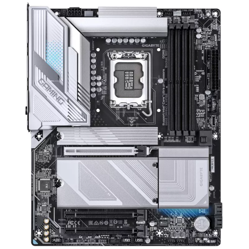 - GIGABYTE B860 GAMING X WIFI6E MOTHERBOARD - INTEL CORE ULTRA SERIES CPUS, 12+1+2+1 PHASES VRM, UP TO 9066MHZ DDR5, 1XPCIE 5.0 + 2XPCIE 4.0 M.2, 2.5GBE LAN, WIFI 6E, USB4. PROCESSOR MANUFACTURER: INTEL, PROCESSOR SOCKET: LGA 1851 (SOCKET V1), COMPATIBLE PR