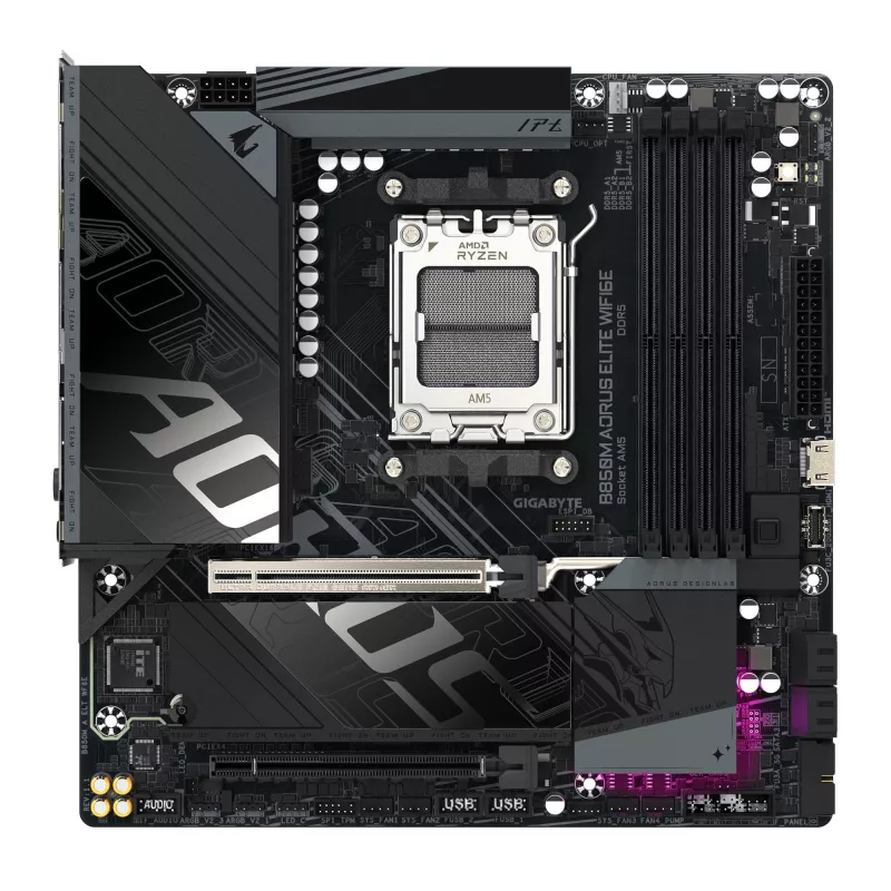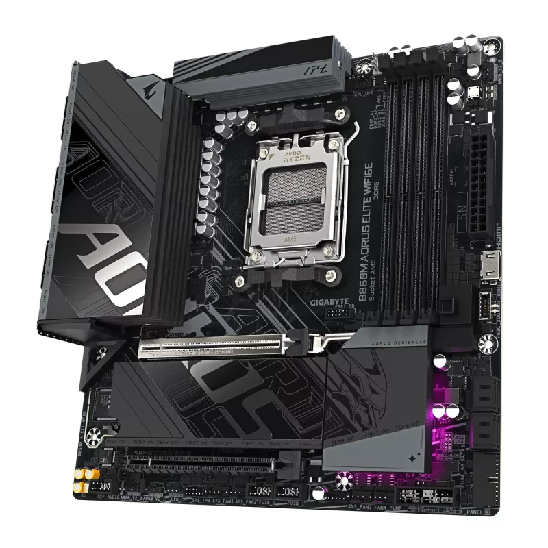- GIGABYTE B850M AORUS ELITE WIFI6E MOTHERBOARD - AMD RYZEN 9000 SERIES CPUS, 12+2+2 PHASES DIGITAL VRM, UP TO 8200MHZ DDR5 (OC), 1XPCIE 5.0 + 1XPCIE 4.0 M.2, WIFI 6E, 2.5GBE LAN, USB 3.2 GEN 2. PROCESSOR MANUFACTURER: AMD, PROCESSOR SOCKET: SOCKET AM5, COM