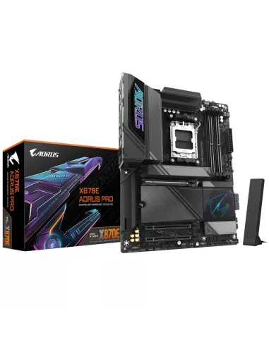 - GIGABYTE X870E AORUS PRO MOTHERBOARD - SUPPORTS AMD RYZEN 9000 CPUS, 16+2+2 PHASES DIGITAL VRM, UP TO 8000MHZ DDR5 (OC), 3XPCIE 5.0 + 1XPCIE 4.0,WI-FI 7, 2.5GBE LAN, USB 4. PROCESSOR MANUFACTURER: AMD, PROCESSOR SOCKET: SOCKET AM5, COMPATIBLE PROCESSOR SE