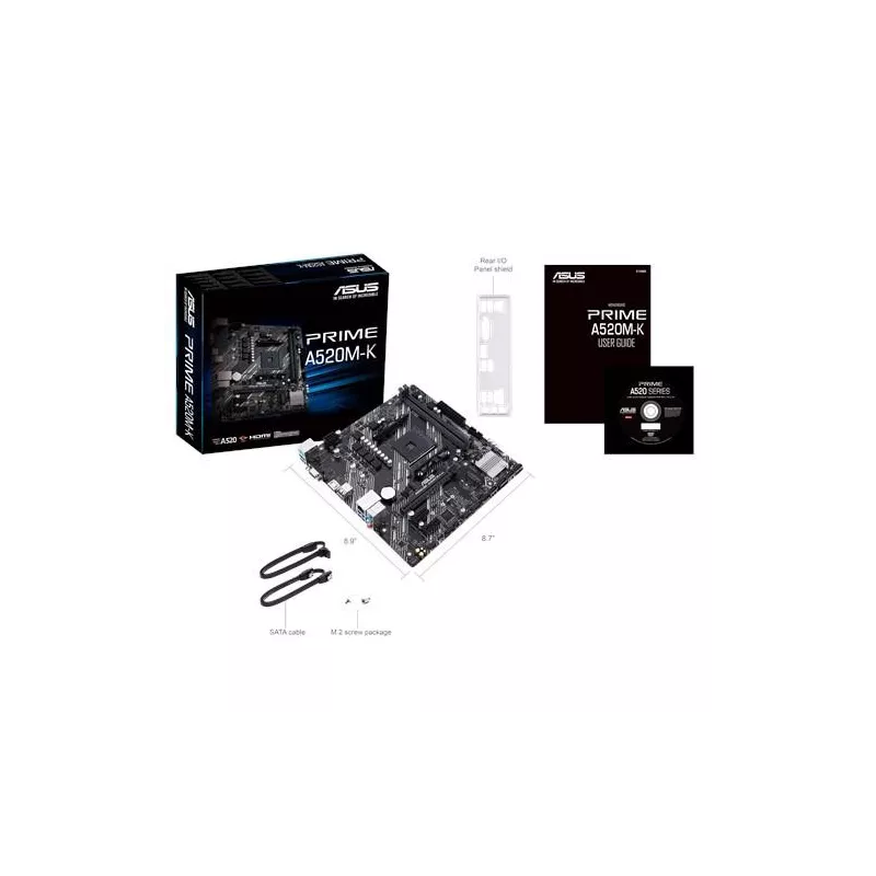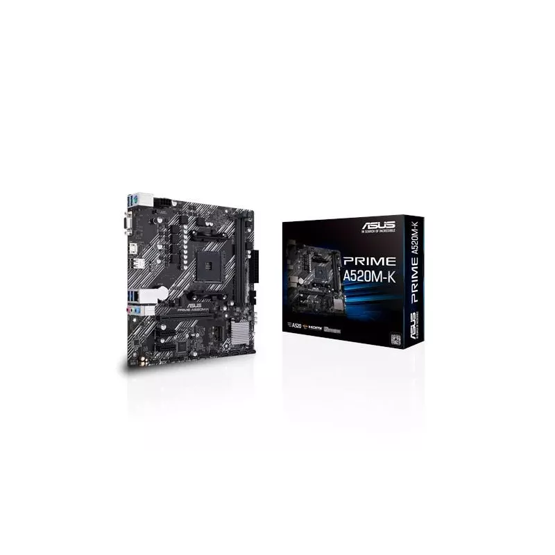 - ASUS PRIME A520M-K. PROCESSOR MANUFACTURER: AMD, PROCESSOR SOCKET: SOCKET AM4, COMPATIBLE PROCESSOR SERIES: AMD RYZEN 3, AMD RYZEN 5, AMD RYZEN 7. SUPPORTED MEMORY TYPES: DDR4-SDRAM, MAXIMUM INTERNAL MEMORY: 64 GB, MEMORY SLOTS TYPE: DIMM. SUPPORTED STORA