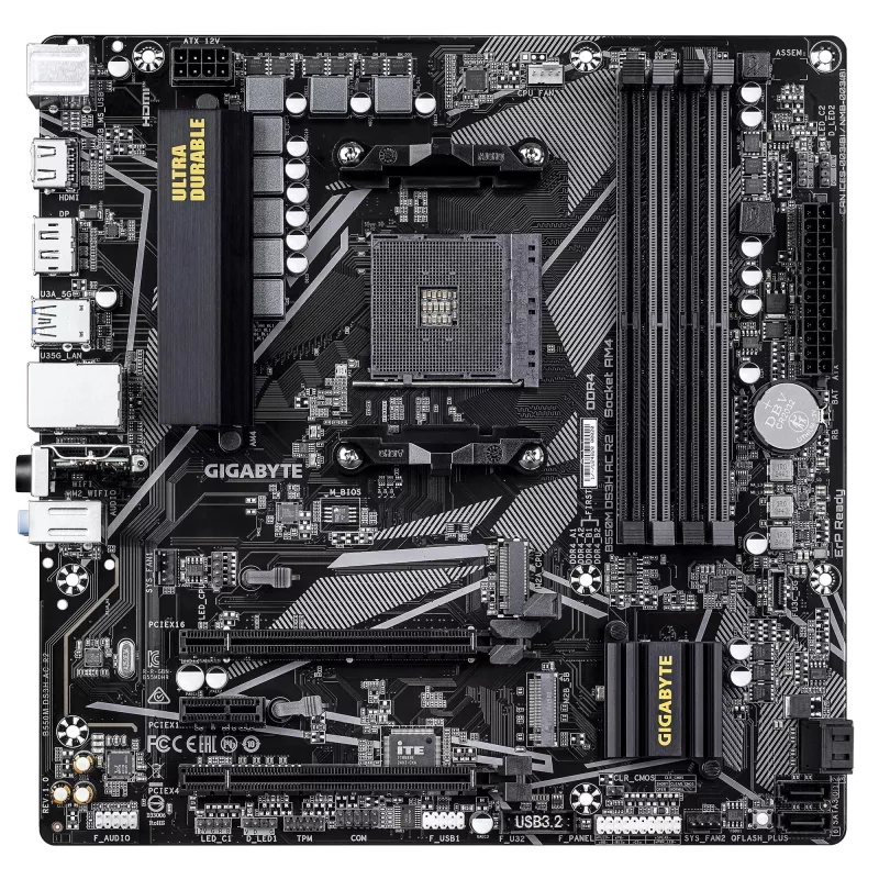 - GIGABYTE B550M DS3H AC R2 MOTHERBOARD - AMD RYZEN 5000 CPUS, 5+3 PHASES VRM, UP TO 4733MHZ DDR4 (O.C.), 1XPCIE 4.0 + 1XPCIE 3.0 M.2, WI-FI 5, 1GBE LAN, USB 3.2 GEN 1. PROCESSOR MANUFACTURER: AMD, PROCESSOR SOCKET: SOCKET AM4, COMPATIBLE PROCESSOR SERIES: