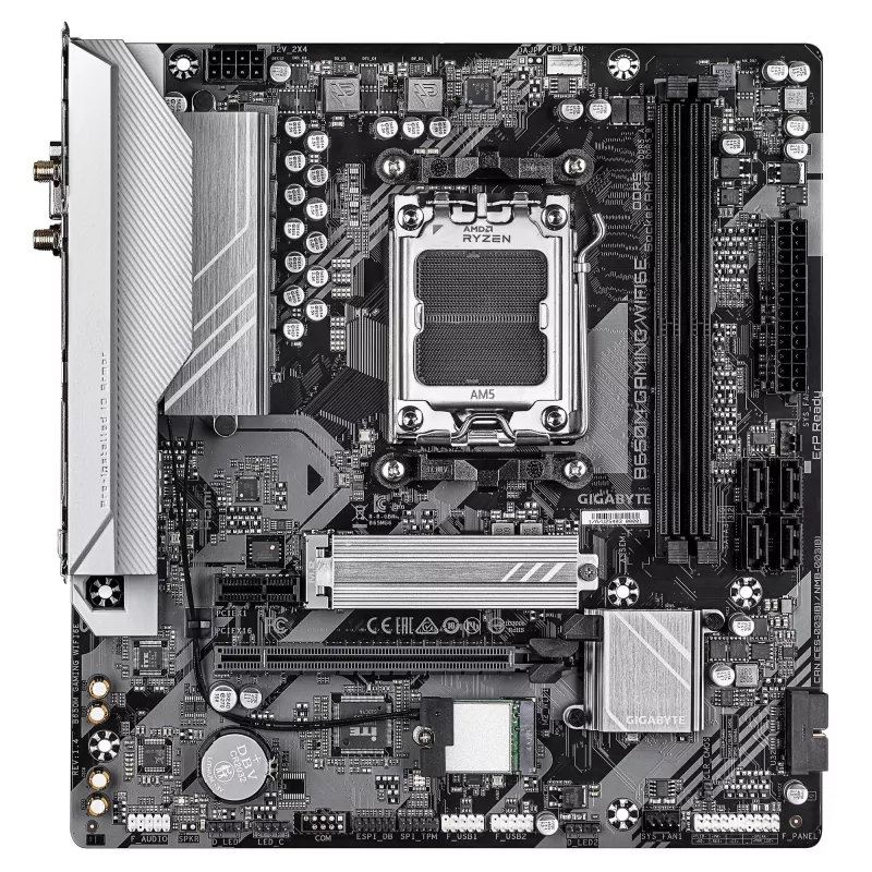 AMD B650 , micro ATX , Audio 7.1 channels , CPU AMD , Socket Socket AM5 , Series AMD Ryzen 7000 Series/AMD Ryzen 8000 Series/AMD Ryzen 9000 Series , Supported memory types DDR5-SDRAM , 4xNumber of memory slots , Memory slots type DIMM , Supported storage drive interfaces M.2,SATA III , 4096 x 2160 pixels , 4xUSB 2.0 ports quantity , 2xUSB 3.2 Gen 1 (3.1 Gen 1) Type-A ports quantity , 1xEthernet LAN (RJ-45) ports , 1xVGA (D-Sub) ports quantity , 1xHDMI ports quantity , Wi-Fi Yes , Bluetooth Yes , Antenna included Yes , Weight 720 g