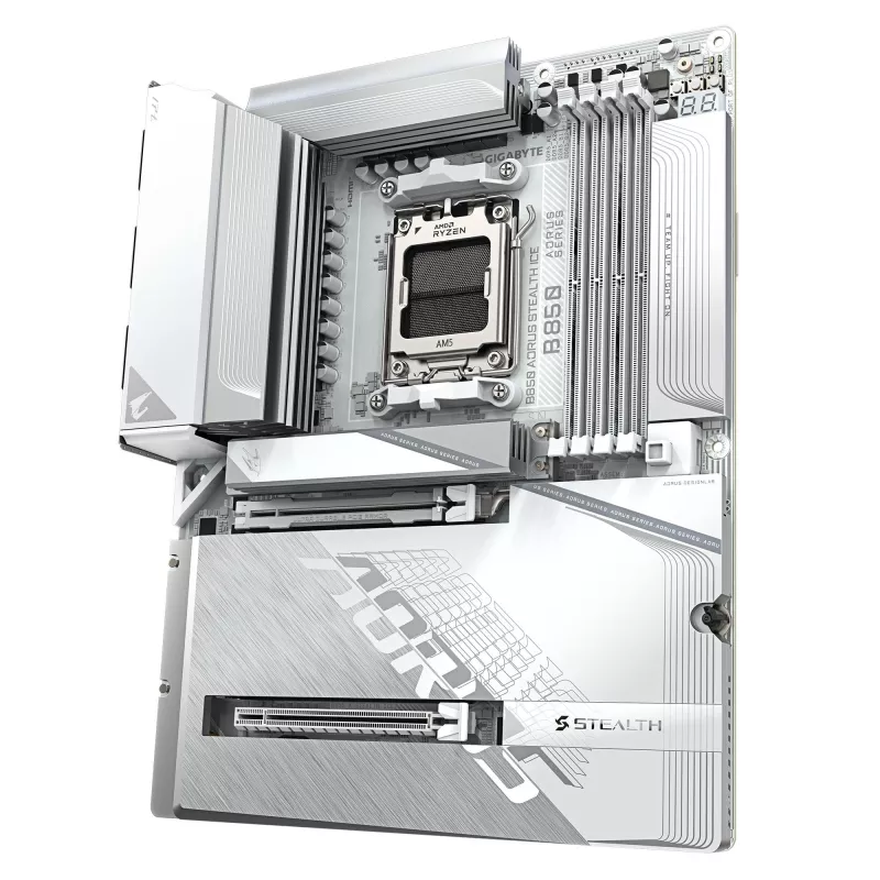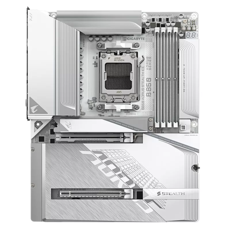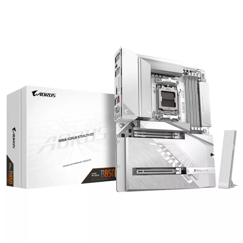 - GIGABYTE B850 AORUS STEALTH ICE MOTHERBOARD - AMD RYZEN 9000 SERIES CPUS, 14+2+2 PHASES DIGITAL VRM, UP TO 8200MHZ DDR5 (OC), 2XPCIE 5.0 + 2XPCIE 4.0 M.2, WIFI 7, 5 GBE LAN, USB 3.2 GEN 2. PROCESSOR MANUFACTURER: AMD, PROCESSOR SOCKET: SOCKET AM5, COMPATI