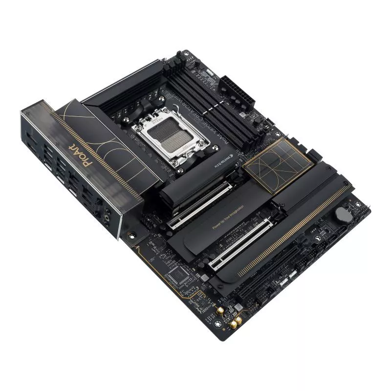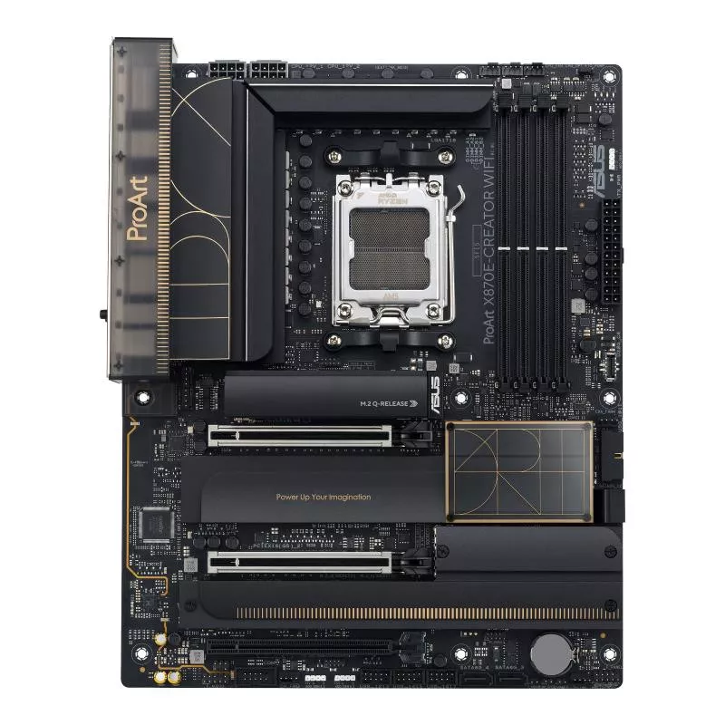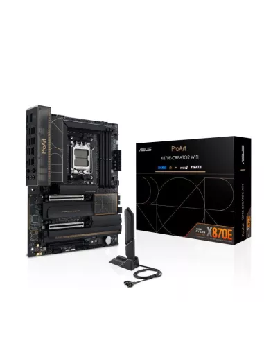 ASUS PROART X870E-CREATOR WIFI. PROCESSOR MANUFACTURER: AMD, PROCESSOR SOCKET: SOCKET AM5, SUPPORTED PROCESSOR SOCKETS: SOCKET AM5. SUPPORTED MEMORY TYPES: DDR5-SDRAM, MAXIMUM INTERNAL MEMORY: 192 GB, MEMORY SLOTS TYPE: DIMM. SUPPORTED STORAGE DRIVE INTER