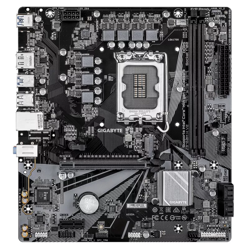 - GIGABYTE B760M H V2 MOTHERBOARD - SUPPORTS INTEL CORE 14TH GEN CPUS, 5+1+1 PHASES DIGITAL VRM, UP TO 8000MHZ DDR5 (O.C.), 1XPCIE 4.0 M.2, 1GBE LAN, USB 3.2 GEN1. PROCESSOR MANUFACTURER: INTEL, PROCESSOR SOCKET: LGA 1700, COMPATIBLE PROCESSOR SERIES: INTEL