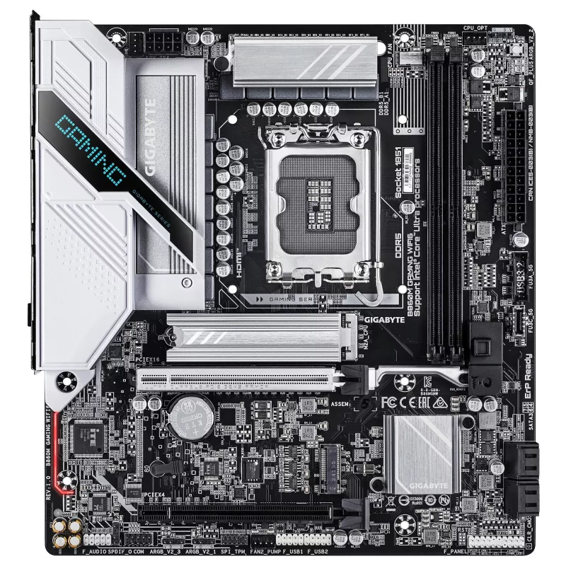 GIGABYTE B860M GAMING WIFI6 MOTHERBOARD - INTEL CORE ULTRA SERIES CPUS, 8+1+2 PHASES VRM, UP TO 9066MHZ DDR5, 1XPCIE 5.0 + 1XPCIE 4.0 M.2, 2.5GBE LAN, WIFI 6, USB 3.2 GEN 1. PROCESSOR MANUFACTURER: INTEL, PROCESSOR SOCKET: LGA 1851 (SOCKET V1), COMPATIBLE