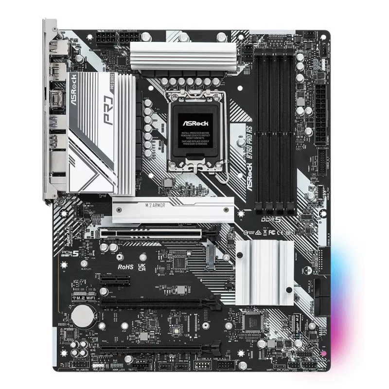 - ASROCK B760 PRO RS. PROCESSOR MANUFACTURER: INTEL, PROCESSOR SOCKET: LGA 1700, COMPATIBLE PROCESSOR SERIES: INTEL CORE I3, INTEL CORE I5, INTEL CORE I7, INTEL CORE I9. SUPPORTED MEMORY TYPES: DDR5-SDRAM, MAXIMUM INTERNAL MEMORY: 128 GB, MEMORY SLOTS TYPE: