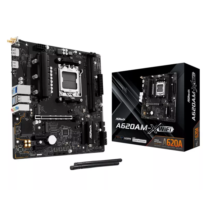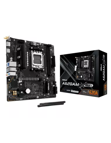 AMD A620 , micro ATX , Socket Socket AM5 , Supported memory types DDR5-SDRAM , 2xNumber of memory slots , 6xUSB 2.0 ports quantity , 5xUSB 3.2 Gen 1 (3.1 Gen 1) Type-A ports quantity , 2xUSB 3.2 Gen 1 (3.1 Gen 1) Type-C ports quantity , 1xEthernet LAN (RJ-45) ports , 1xHDMI ports quantity , Wi-Fi Yes , Bluetooth Yes