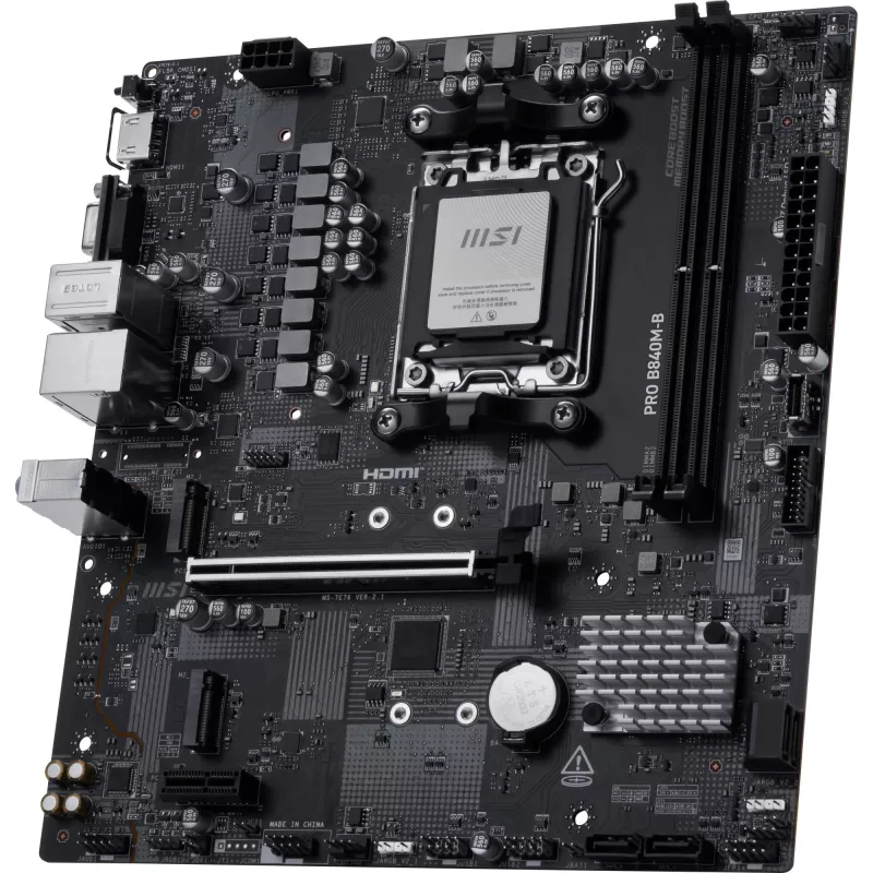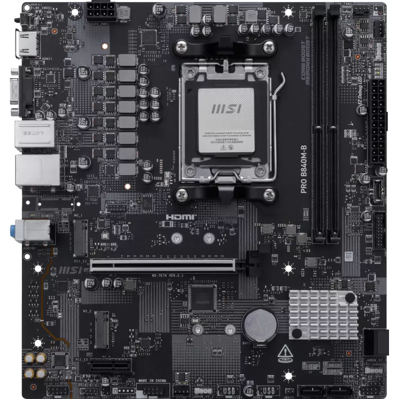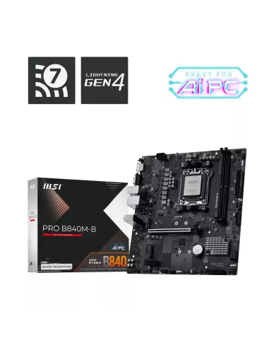 - MSI PRO B840M-B. PROCESSOR MANUFACTURER: AMD, PROCESSOR SOCKET: SOCKET AM5, COMPATIBLE PROCESSOR SERIES: AMD RYZEN 7000 SERIES, AMD RYZEN 8000 SERIES, AMD RYZEN 9000 SERIES. SUPPORTED MEMORY TYPES: DDR5-SDRAM, MAXIMUM INTERNAL MEMORY: 128 GB, MEMORY SLOTS