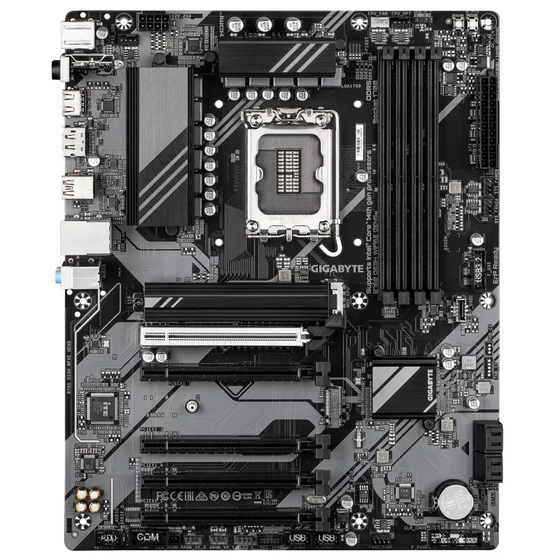 - GIGABYTE B760 DS3H WIFI6E GEN5 MOTHERBOARD - SUPPORTS INTEL CORE 14TH GEN CPUS, 8+2+1 PHASES DIGITAL VRM, UP TO 5600MHZ DDR5, 2XPCIE 4.0 M.2, WI-FI 6E, 1GBE LAN, USB 3.2 GEN 2X2. PROCESSOR MANUFACTURER: INTEL, PROCESSOR SOCKET: LGA 1700, COMPATIBLE PROCES