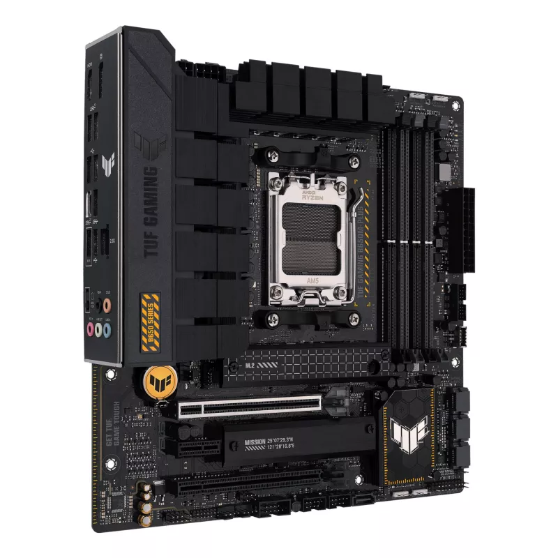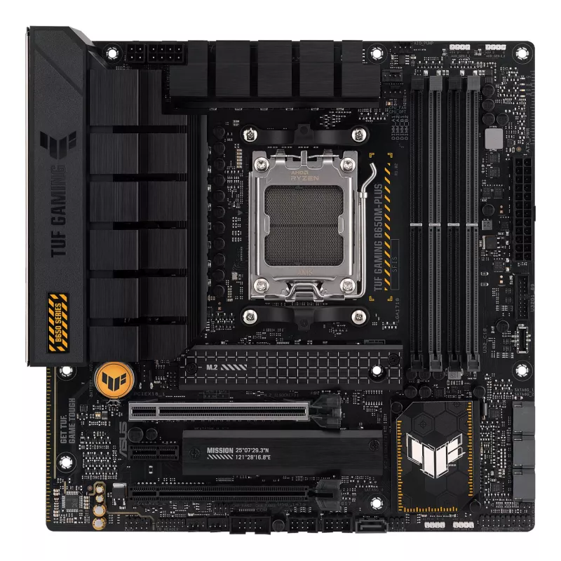 - ASUS TUF GAMING B650M-PLUS. PROCESSOR MANUFACTURER: AMD, PROCESSOR SOCKET: SOCKET AM5, COMPATIBLE PROCESSOR SERIES: AMD RYZEN 7000 SERIES. SUPPORTED MEMORY TYPES: DDR5-SDRAM, MAXIMUM INTERNAL MEMORY: 128 GB, MEMORY SLOTS TYPE: DIMM. SUPPORTED STORAGE DRIV
