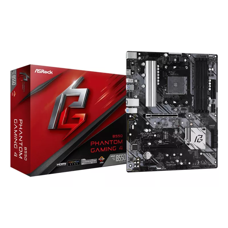 - ASROCK B550 PHANTOM GAMING 4. PROCESSOR MANUFACTURER: AMD, PROCESSOR SOCKET: SOCKET AM4, COMPATIBLE PROCESSOR SERIES: AMD RYZEN 3000 SERIES. SUPPORTED MEMORY TYPES: DDR4-SDRAM, MAXIMUM INTERNAL MEMORY: 128 GB, MEMORY SLOTS TYPE: DIMM. SUPPORTED STORAGE DR