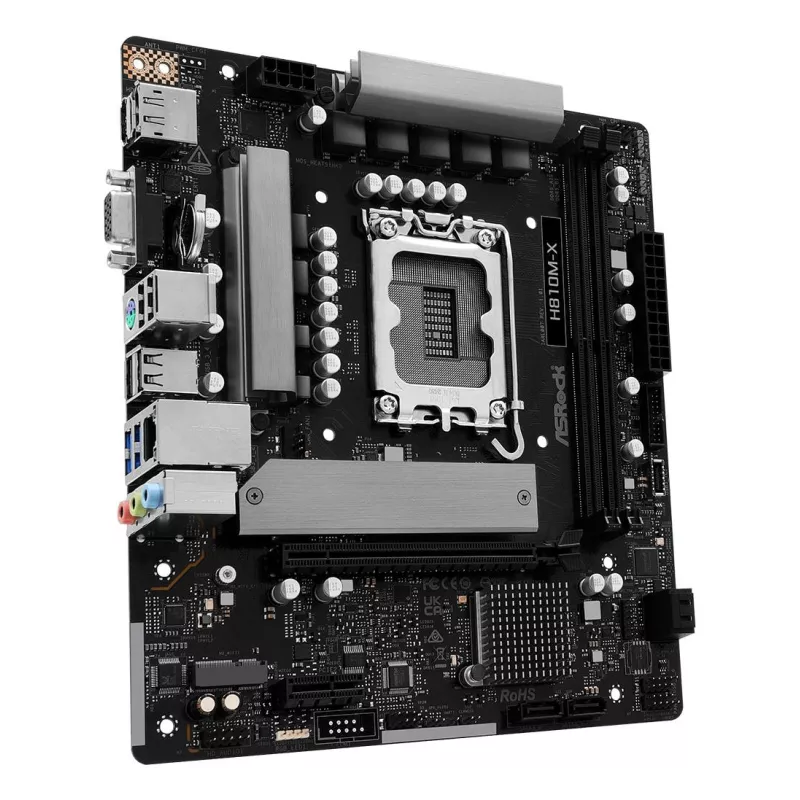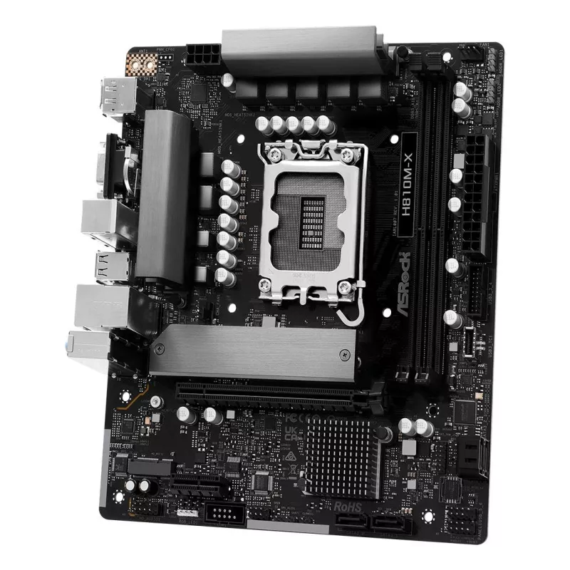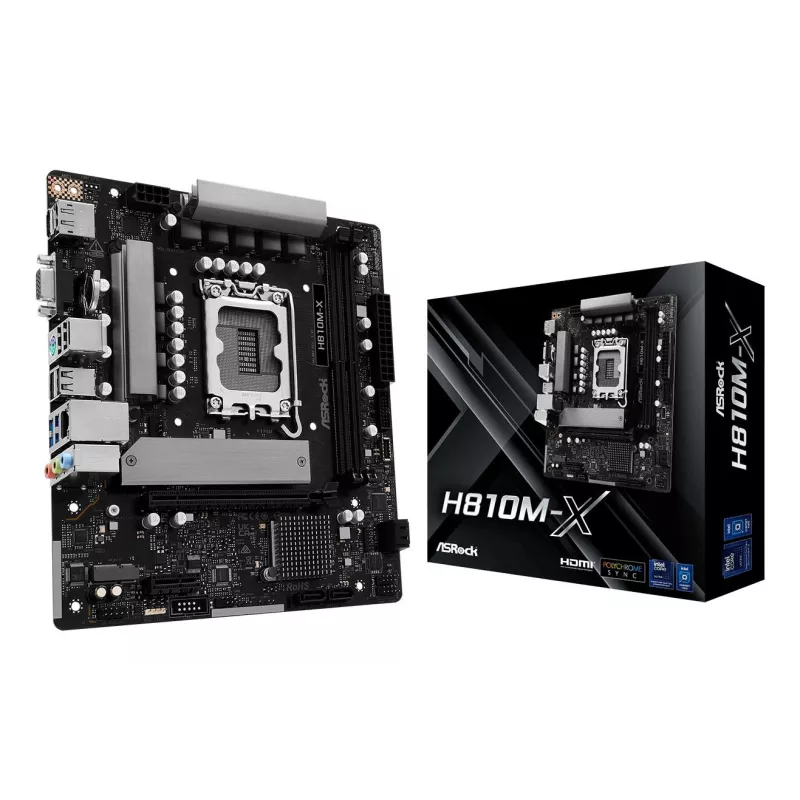 - ASROCK H810M-X. PROCESSOR MANUFACTURER: INTEL, PROCESSOR SOCKET: LGA 1851 (SOCKET V1), COMPATIBLE PROCESSOR SERIES: INTEL CORE ULTRA (SERIES 2). SUPPORTED MEMORY TYPES: DDR5-SDRAM, MAXIMUM INTERNAL MEMORY: 128 GB, MEMORY SLOTS TYPE: DIMM. SUPPORTED STORAG