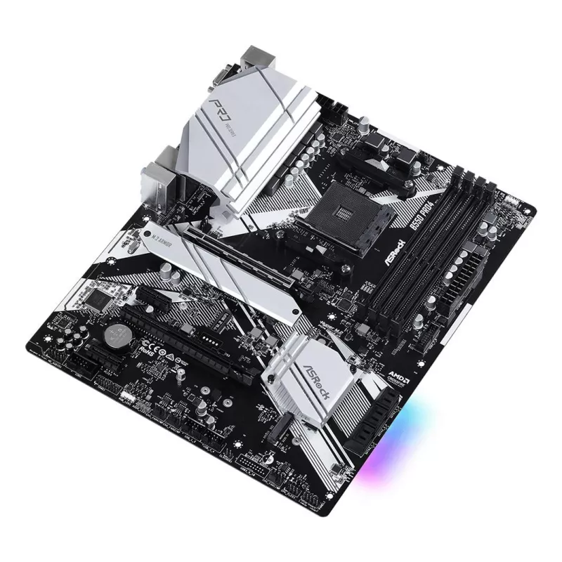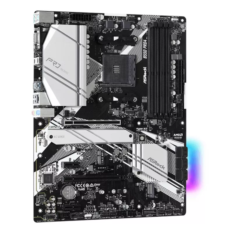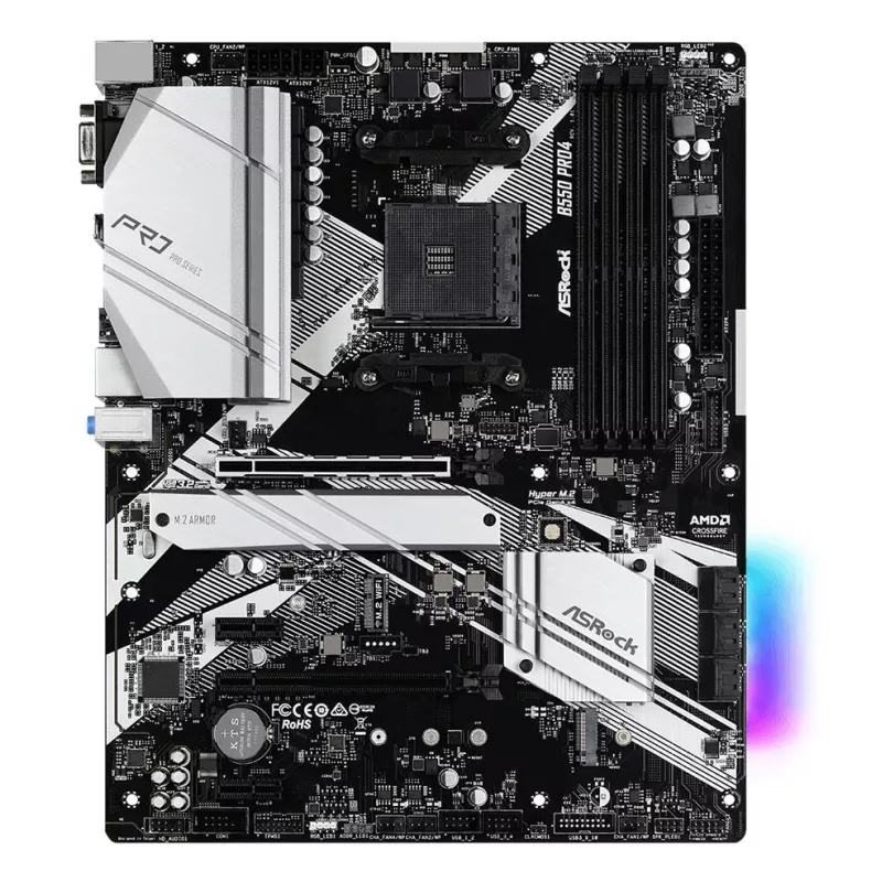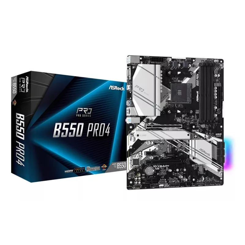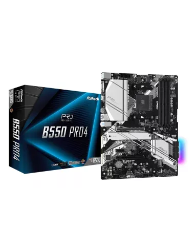 - ASROCK B550 PRO4. PROCESSOR MANUFACTURER: AMD, PROCESSOR SOCKET: SOCKET AM4, COMPATIBLE PROCESSOR SERIES: AMD RYZEN 3000 SERIES. SUPPORTED MEMORY TYPES: DDR4-SDRAM, MAXIMUM INTERNAL MEMORY: 128 GB, MEMORY SLOTS TYPE: DIMM. SUPPORTED STORAGE DRIVE INTERFAC