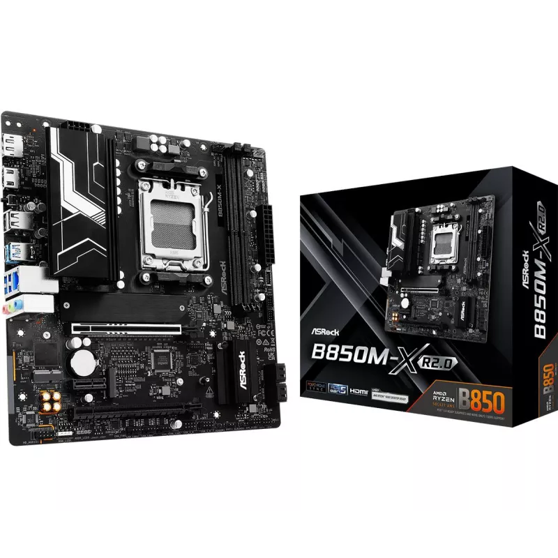 - ASROCK B850M-X R2.0. PROCESSOR MANUFACTURER: AMD, PROCESSOR SOCKET: SOCKET AM5, COMPATIBLE PROCESSOR SERIES: AMD RYZEN 7000 SERIES, AMD RYZEN 8000 SERIES, AMD RYZEN 9000 SERIES. SUPPORTED MEMORY TYPES: DDR5-SDRAM, MAXIMUM INTERNAL MEMORY: 128 GB, MEMORY S
