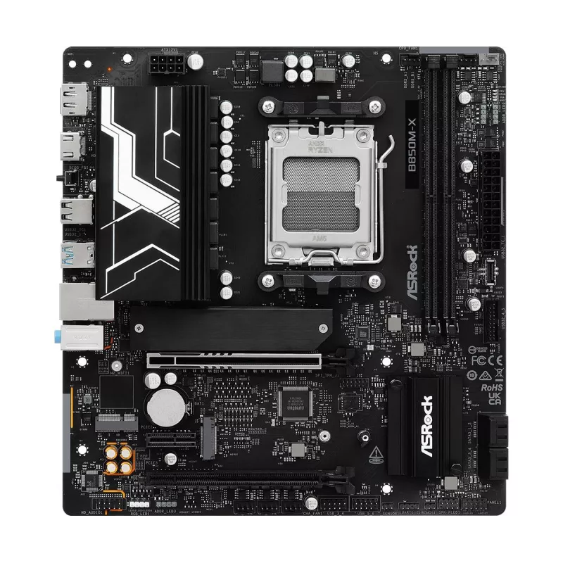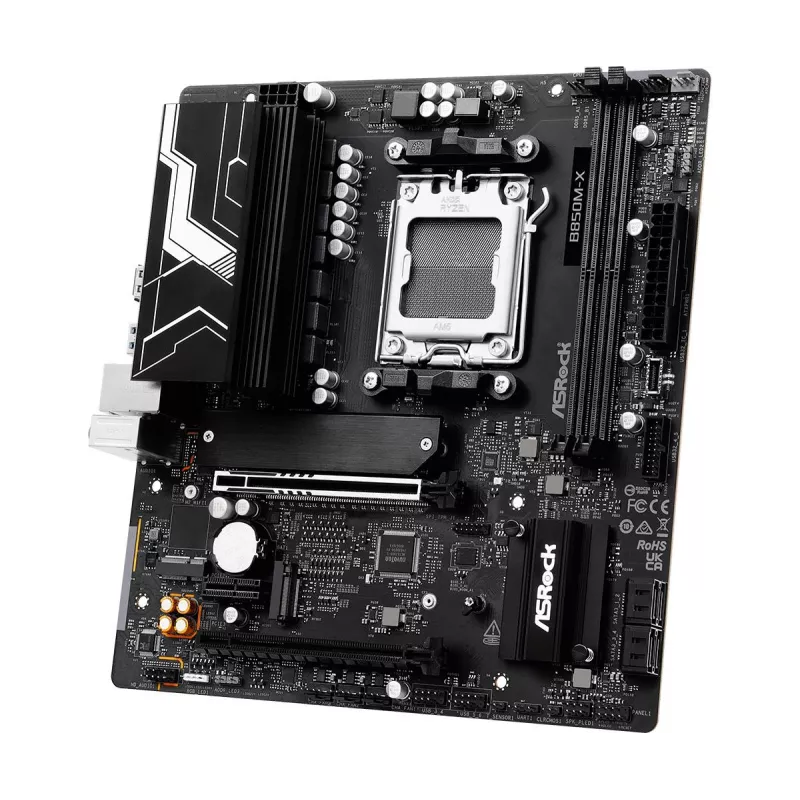 AMD B850 , micro ATX , Audio 7.1 channels , CPU AMD , Socket Socket AM5 , Series AMD Ryzen 7000 Series/AMD Ryzen 8000 Series/AMD Ryzen 9000 Series , Supported memory types DDR5-SDRAM , 2xNumber of memory slots , Memory slots type DIMM , Supported storage drive interfaces M.2,SATA III , 2xUSB 2.0 ports quantity , 3xUSB 3.2 Gen 1 (3.1 Gen 1) Type-A ports quantity , 1xUSB 3.2 Gen 1 (3.1 Gen 1) Type-C ports quantity , 1xEthernet LAN (RJ-45) ports , 1xHDMI ports quantity