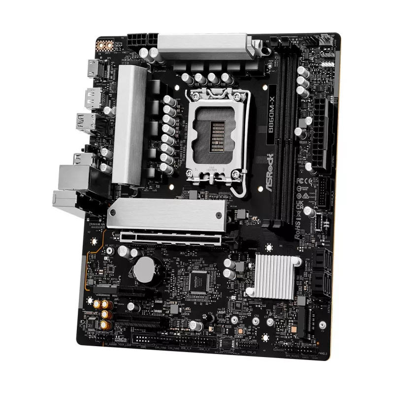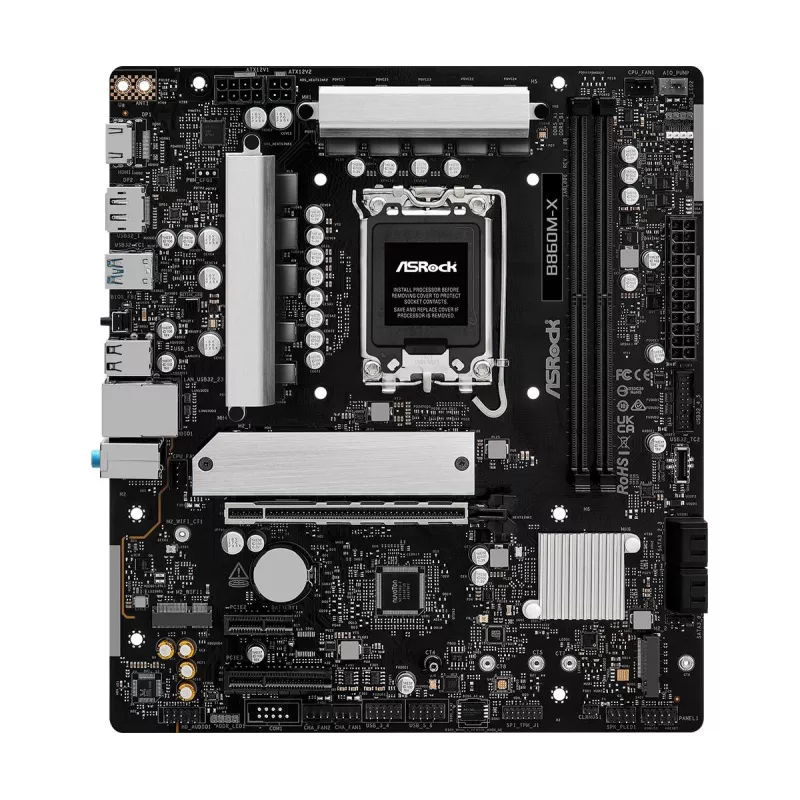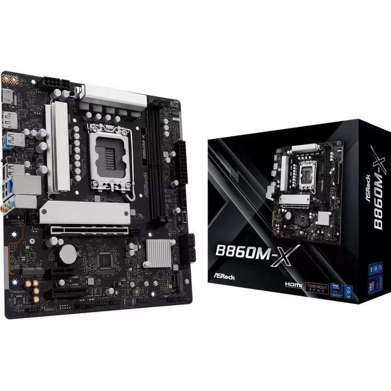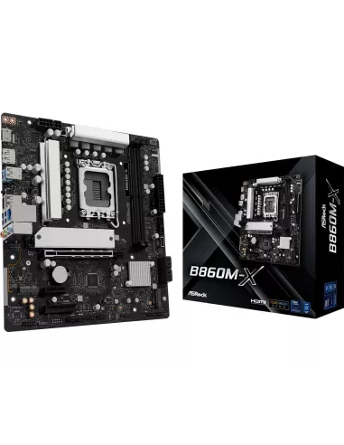 - ASROCK B860M-X. PROCESSOR MANUFACTURER: INTEL, PROCESSOR SOCKET: LGA 1851 (SOCKET V1), COMPATIBLE PROCESSOR SERIES: INTEL CORE ULTRA (SERIES 2). SUPPORTED MEMORY TYPES: DDR5-SDRAM, MAXIMUM INTERNAL MEMORY: 128 GB, MEMORY SLOTS TYPE: DIMM. SUPPORTED STORAG