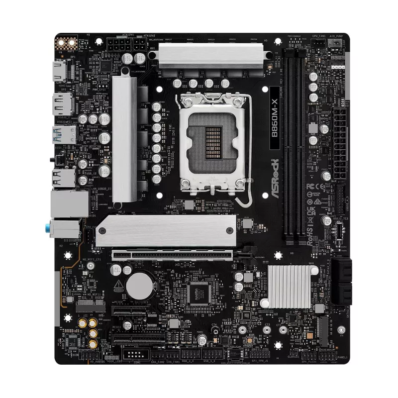 Intel B860 , micro ATX , Audio 7.1 channels , CPU Intel , Socket LGA 1851 (Socket V1) , Series Intel Core Ultra (Series 2) , Supported memory types DDR5-SDRAM , 2xNumber of memory slots , Memory slots type DIMM , Supported storage drive interfaces M.2,SATA III , On-board graphics card Yes , 2xUSB 2.0 ports quantity , 3xUSB 3.2 Gen 1 (3.1 Gen 1) Type-A ports quantity , 1xEthernet LAN (RJ-45) ports , 1xHDMI ports quantity