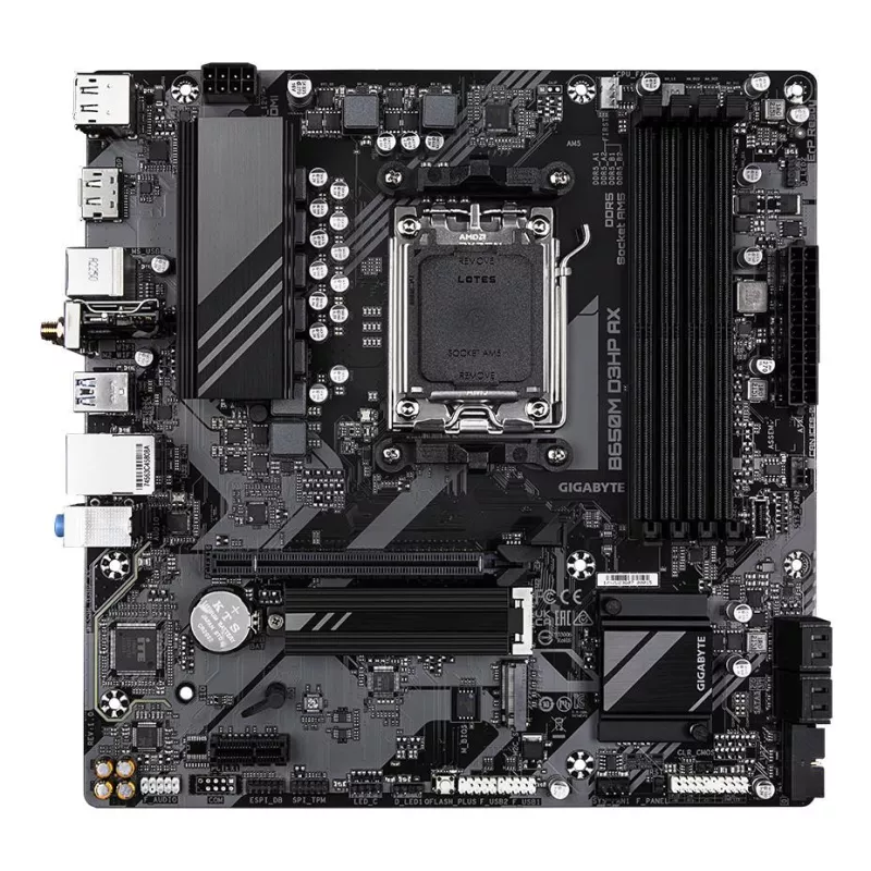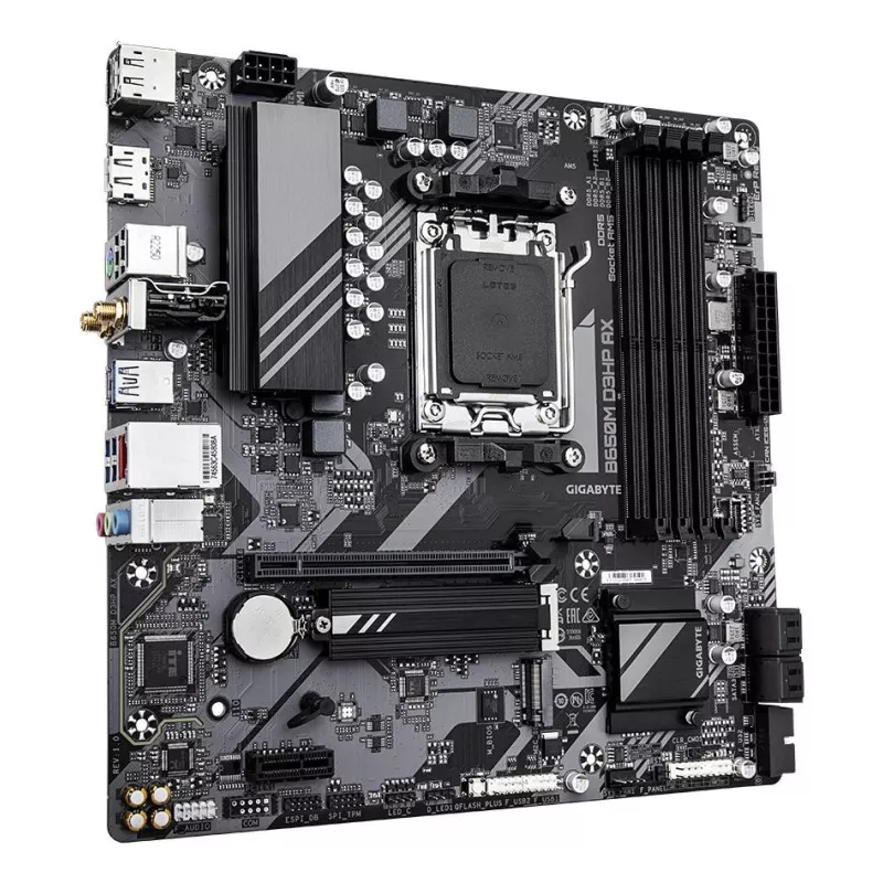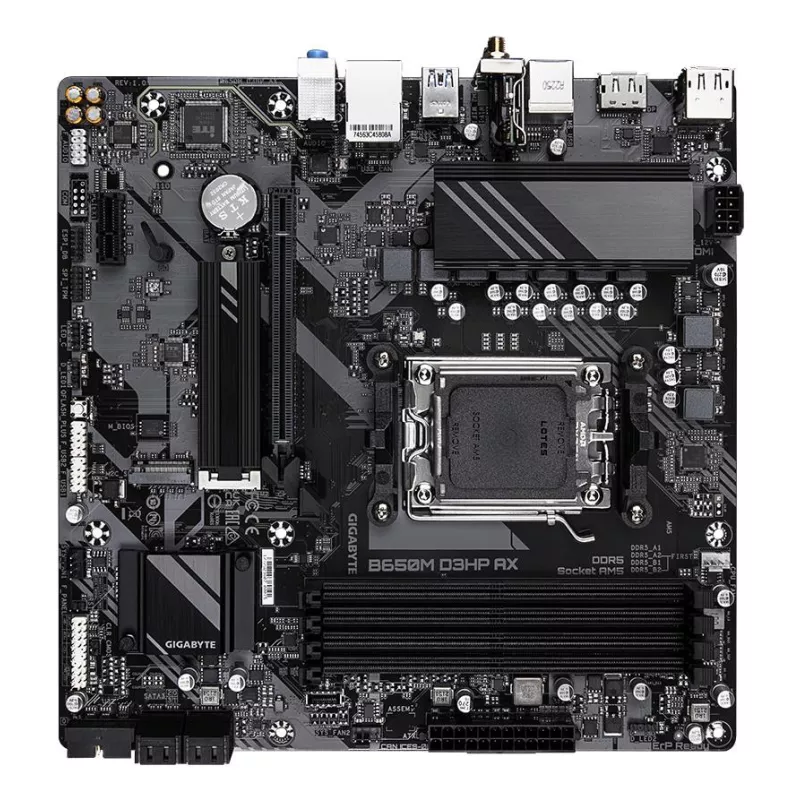 - GIGABYTE B650M D3HP AX MOTHERBOARD - AMD RYZEN 9000 SERIES CPUS, 5+2+2 PHASES VRM, UP TO 8000MHZ DDR5 (OC), 2XPCIE 4.0 M.2, WIFI 6E, 2.5GBE LAN, USB 3.2 GEN 1. PROCESSOR MANUFACTURER: AMD, PROCESSOR SOCKET: SOCKET AM5, COMPATIBLE PROCESSOR SERIES: AMD RYZ