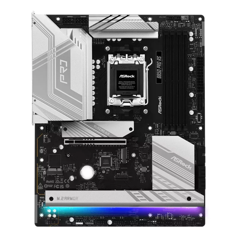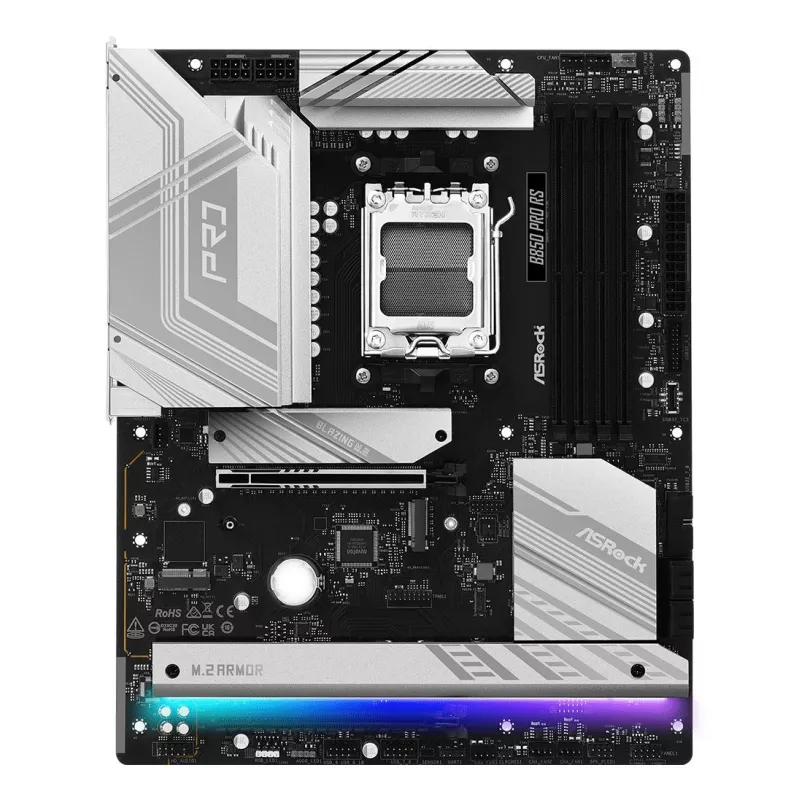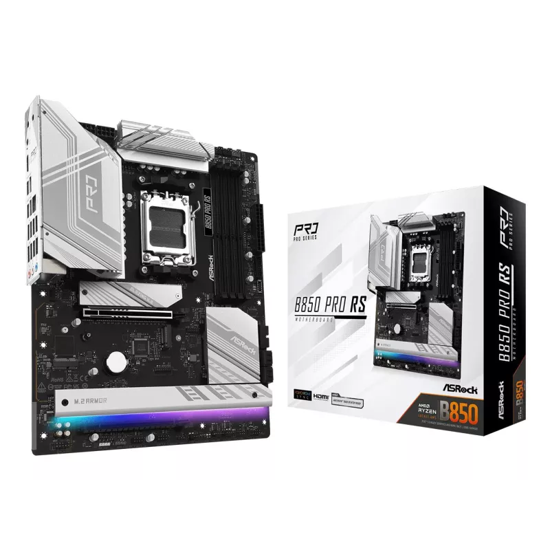 - ASROCK B850 PRO RS. PROCESSOR MANUFACTURER: AMD, PROCESSOR SOCKET: SOCKET AM5, COMPATIBLE PROCESSOR SERIES: AMD RYZEN 7000 SERIES, AMD RYZEN 8000 SERIES, AMD RYZEN 9000 SERIES. SUPPORTED MEMORY TYPES: DDR5-SDRAM, MAXIMUM INTERNAL MEMORY: 256 GB, MEMORY SL