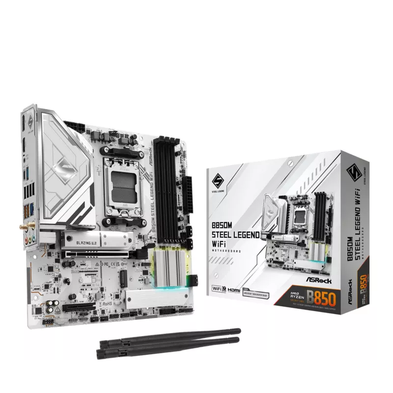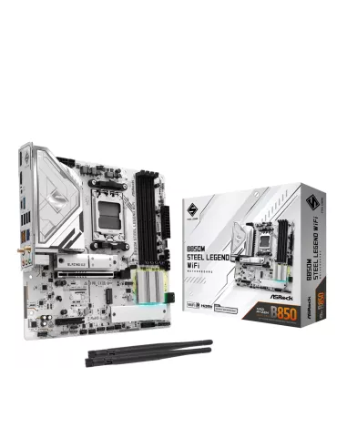 ASROCK B850M STEEL LEGEND WIFI. PROCESSOR MANUFACTURER: AMD, PROCESSOR SOCKET: SOCKET AM5, COMPATIBLE PROCESSOR SERIES: AMD RYZEN 7000 SERIES, AMD RYZEN 8000 SERIES, AMD RYZEN 9000 SERIES. SUPPORTED MEMORY TYPES: DDR5-SDRAM, MAXIMUM INTERNAL MEMORY: 256 G