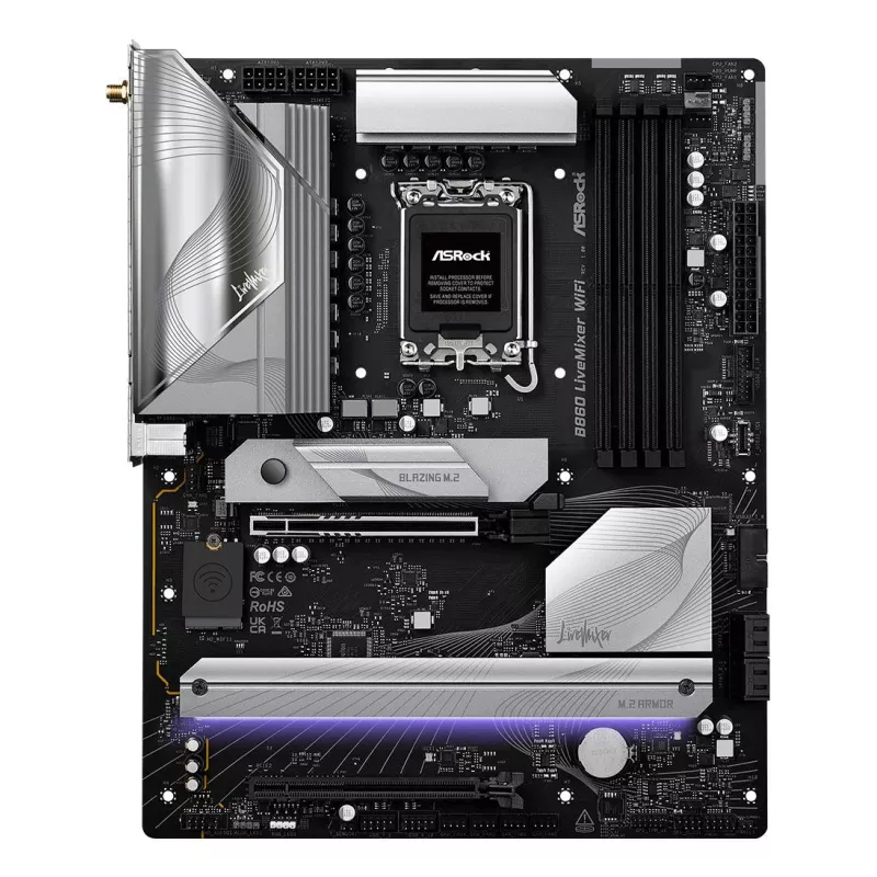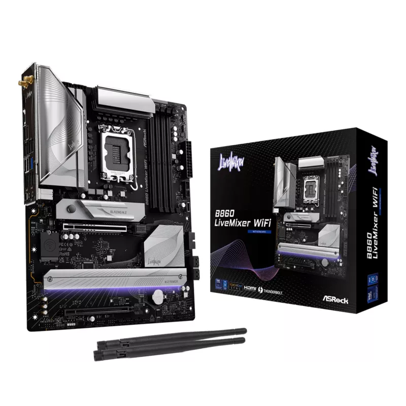 - ASROCK B860 LIVEMIXER WIFI. PROCESSOR MANUFACTURER: INTEL, PROCESSOR SOCKET: LGA 1851 (SOCKET V1), COMPATIBLE PROCESSOR SERIES: INTEL CORE ULTRA (SERIES 2). SUPPORTED MEMORY TYPES: DDR5-SDRAM, MAXIMUM INTERNAL MEMORY: 256 GB, MEMORY SLOTS TYPE: DIMM. SUPP