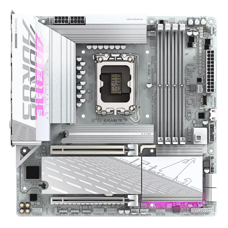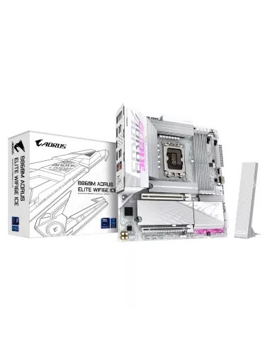 GIGABYTE B860M AORUS ELITE WF6E ICE MOTHERBOARD - INTEL CORE ULTRA SERIES CPUS, 12+1+2+1 PHASES VRM, UP TO 9200MHZ DDR5, 1XPCIE 5.0 + 2XPCIE 4.0 M.2, 2.5GBE LAN, WIFI 6E, USB 4. PROCESSOR MANUFACTURER: INTEL, PROCESSOR SOCKET: LGA 1851 (SOCKET V1), COMPAT