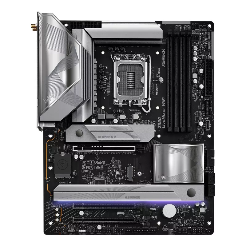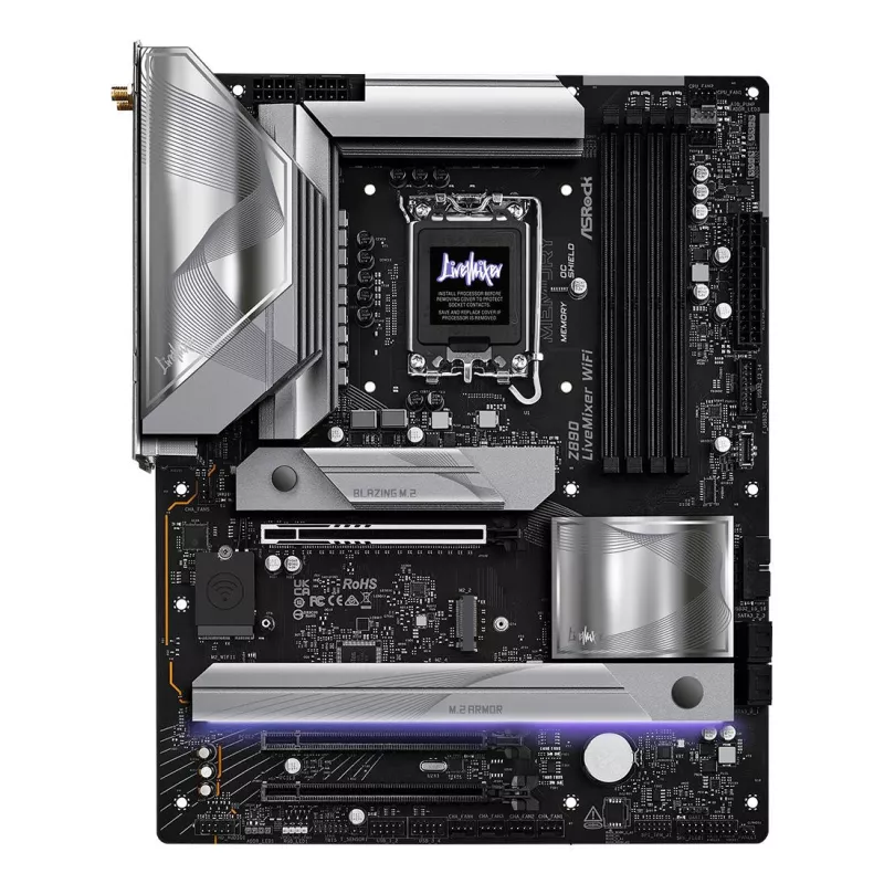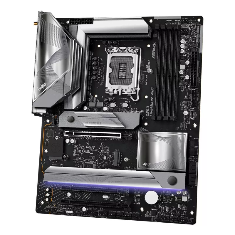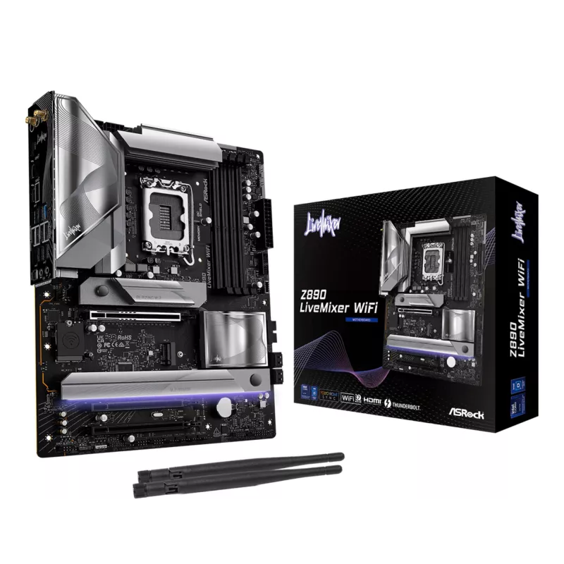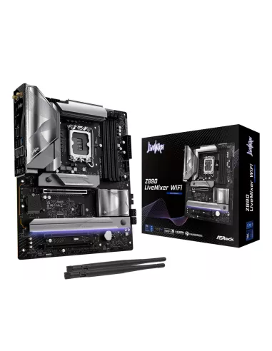 ASROCK Z890 LIVEMIXER WIFI. PROCESSOR MANUFACTURER: INTEL, PROCESSOR SOCKET: LGA 1851 (SOCKET V1), COMPATIBLE PROCESSOR SERIES: INTEL CORE ULTRA (SERIES 2). SUPPORTED MEMORY TYPES: DDR5-SDRAM, MAXIMUM INTERNAL MEMORY: 256 GB, MEMORY SLOTS TYPE: DIMM. SUPP