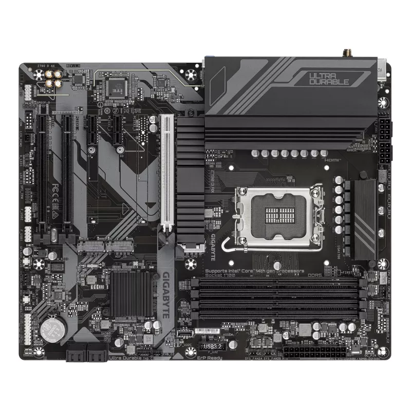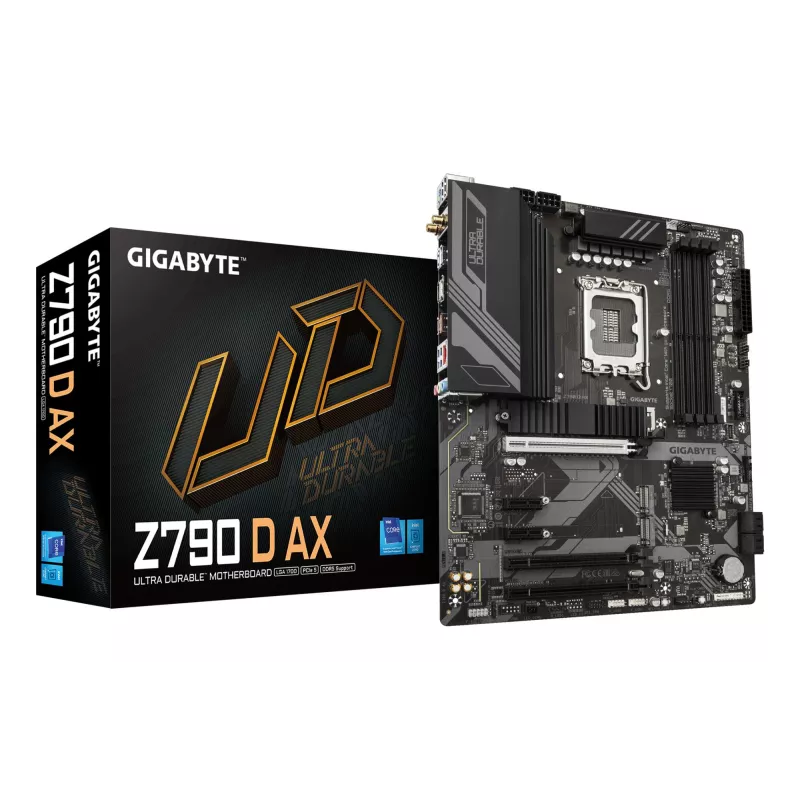 GIGABYTE Z790 D AX MOTHERBOARD - SUPPORTS INTEL CORE 14TH GEN CPUS, 12+1+1 PHASES DIGITAL VRM, UP TO 7600MHZ DDR5 (OC), 3XPCIE 4.0 M.2, WI-FI 6E, 2.5GBE LAN, USB 3.2 GEN 2. PROCESSOR MANUFACTURER: INTEL, PROCESSOR SOCKET: LGA 1700, COMPATIBLE PROCESSOR SE