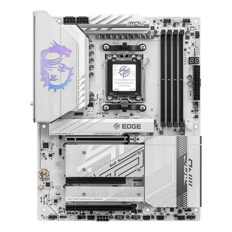 MSI MPG B850 EDGE TI WIFI. PROCESSOR MANUFACTURER: AMD, PROCESSOR SOCKET: SOCKET AM5, COMPATIBLE PROCESSOR SERIES: AMD RYZEN 7000 SERIES, AMD RYZEN 8000 SERIES, AMD RYZEN 9000 SERIES. SUPPORTED MEMORY TYPES: DDR5-SDRAM, MAXIMUM INTERNAL MEMORY: 256 GB, ME