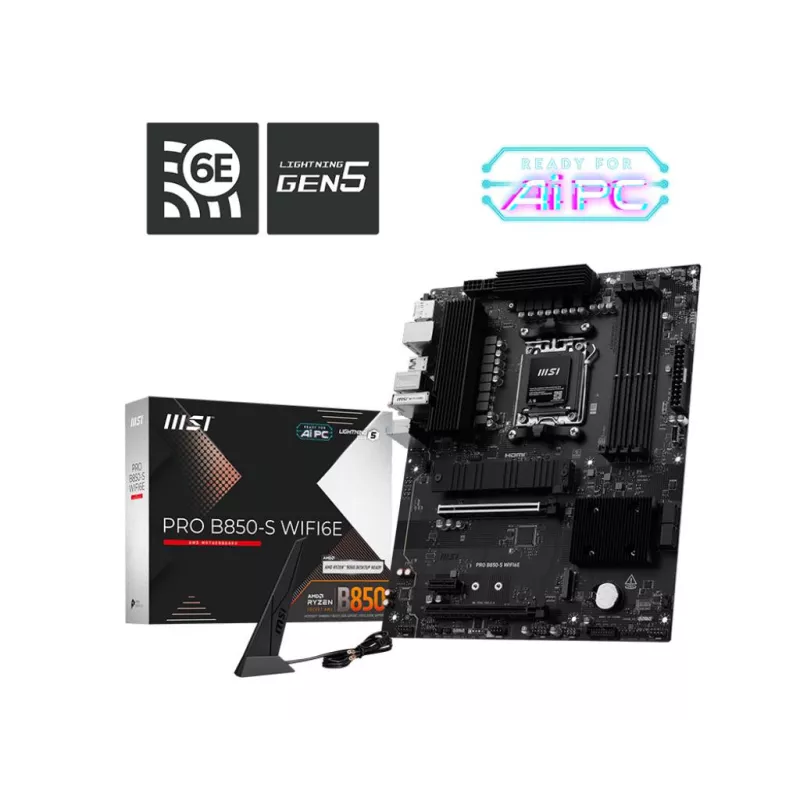 - MSI PRO B850-S WIFI6E. PROCESSOR MANUFACTURER: AMD, PROCESSOR SOCKET: SOCKET AM5, COMPATIBLE PROCESSOR SERIES: AMD RYZEN 7000 SERIES, AMD RYZEN 8000 SERIES, AMD RYZEN 9000 SERIES. SUPPORTED MEMORY TYPES: DDR5-SDRAM, MAXIMUM INTERNAL MEMORY: 256 GB, MEMORY