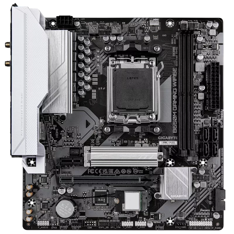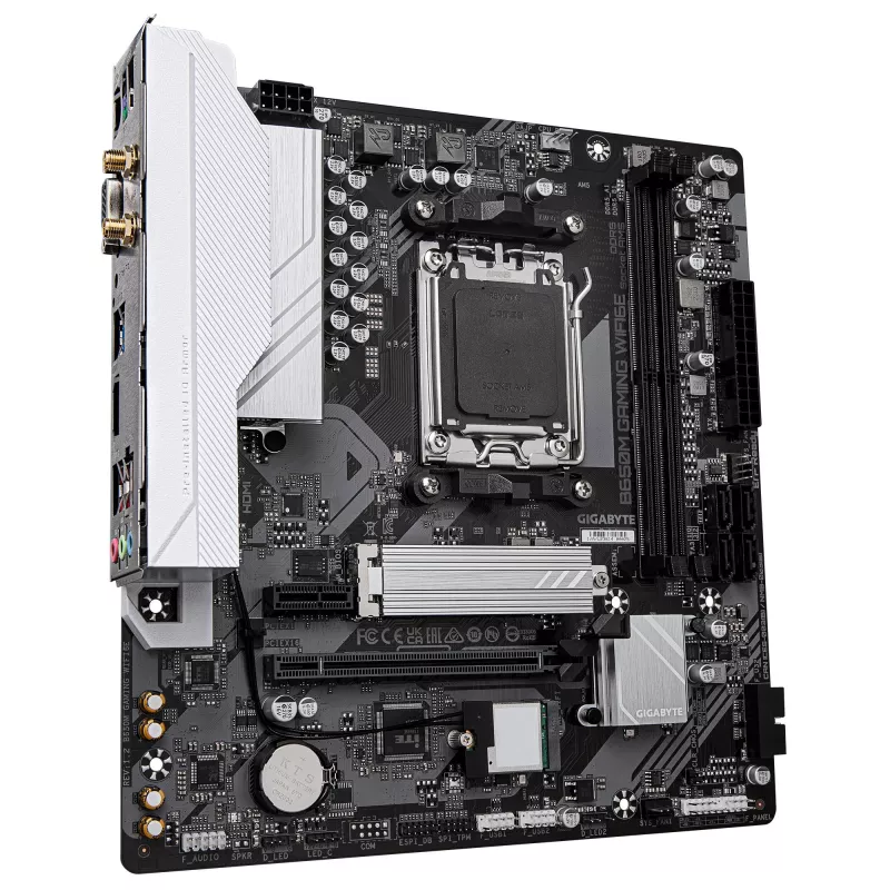 AMD B650 , micro ATX , Audio 7.1 channels , CPU AMD , Socket Socket AM5 , Series AMD Ryzen 7000 Series/AMD Ryzen 8000 Series/AMD Ryzen 9000 Series , Supported memory types DDR5-SDRAM , 4xNumber of memory slots , Memory slots type DIMM , Supported storage drive interfaces M.2,SATA III , 4096 x 2160 pixels , 4xUSB 2.0 ports quantity , 2xUSB 3.2 Gen 1 (3.1 Gen 1) Type-A ports quantity , 1xEthernet LAN (RJ-45) ports , 1xVGA (D-Sub) ports quantity , 1xHDMI ports quantity , Wi-Fi Yes , Bluetooth Yes , Antenna included Yes , Weight 720 g