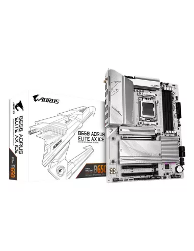 - GIGABYTE B650 AORUS ELITE AX ICE MOTHERBOARD - SUPPORTS AMD RYZEN 9000 CPUS, 12+2+2 PHASES DIGITAL VRM, UP TO 8000MHZ DDR5 (OC), 1XPCIE 5.0 + 2XPCIE 4.0 M.2, WI-FI 6E, 2.5GBE LAN, USB 3.2 GEN 2X2. PROCESSOR MANUFACTURER: AMD, PROCESSOR SOCKET: SOCKET AM5,