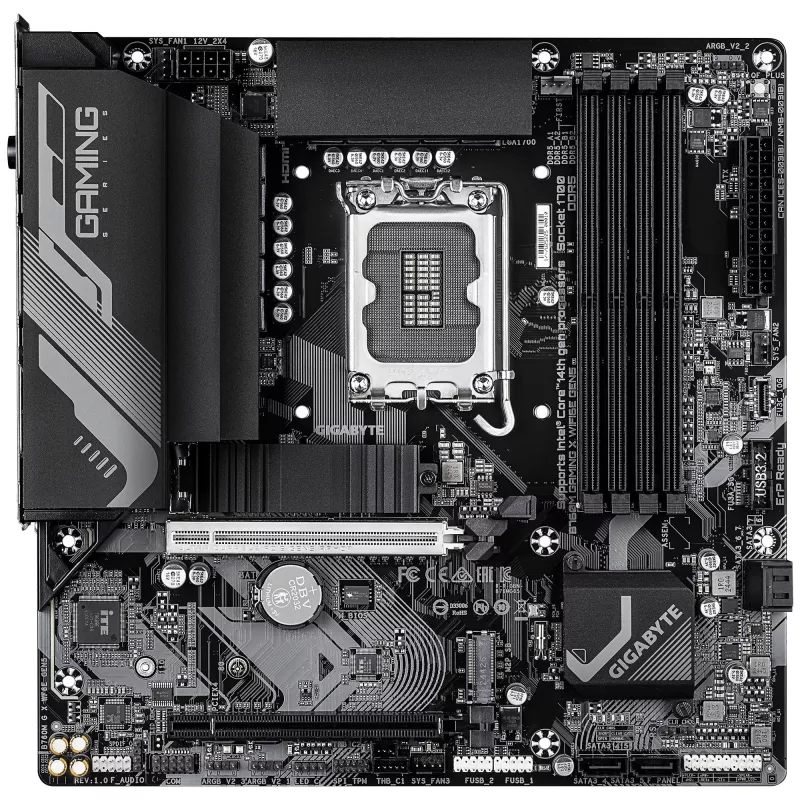- GIGABYTE B760M GAMING X WIFI6E GEN5 MOTHERBOARD - SUPPORTS 14TH GEN. INTEL CORE CPUS, 8+1+1 PHASES VRM, UP TO 5600MHZ DDR5, 2XPCIE 4.0 M.2, WI-FI 6E, 2.5 GBE LAN, USB 3.2 GEN 1. PROCESSOR MANUFACTURER: INTEL, PROCESSOR SOCKET: LGA 1700, COMPATIBLE PROCESS