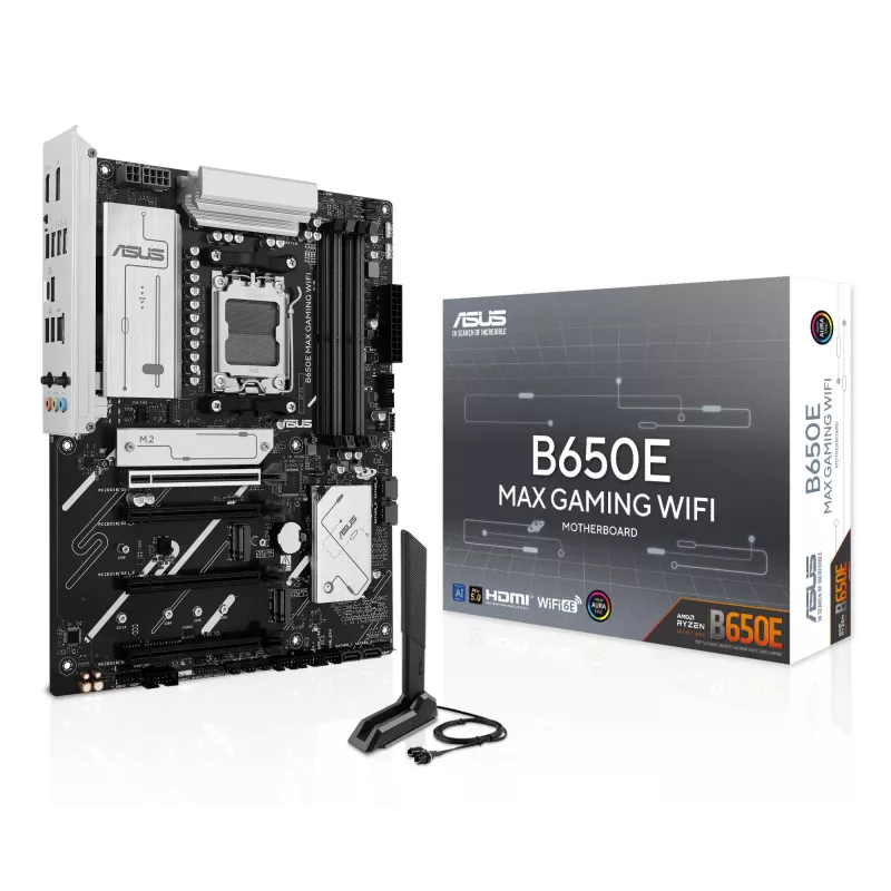 ASUS B650E MAX GAMING WIFI. PROCESSOR MANUFACTURER: AMD, PROCESSOR SOCKET: SOCKET AM5, COMPATIBLE PROCESSOR SERIES: AMD RYZEN 7000 SERIES, AMD RYZEN 8000 SERIES, AMD RYZEN 9000 SERIES. SUPPORTED MEMORY TYPES: DDR5-SDRAM, MAXIMUM INTERNAL MEMORY: 256 GB, M