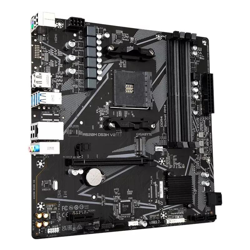 GIGABYTE A520M DS3H V2 MOTHERBOARD - SUPPORTS AMD RYZEN 5000 SERIES AM4 CPUS, UP TO 4733MHZ DDR4 (OC), PCIE 3.0 X16, GBE LAN, USB 3.2 GEN 1. PROCESSOR MANUFACTURER: AMD, PROCESSOR SOCKET: SOCKET AM4, COMPATIBLE PROCESSOR SERIES: AMD RYZEN 3000 SERIES, AMD