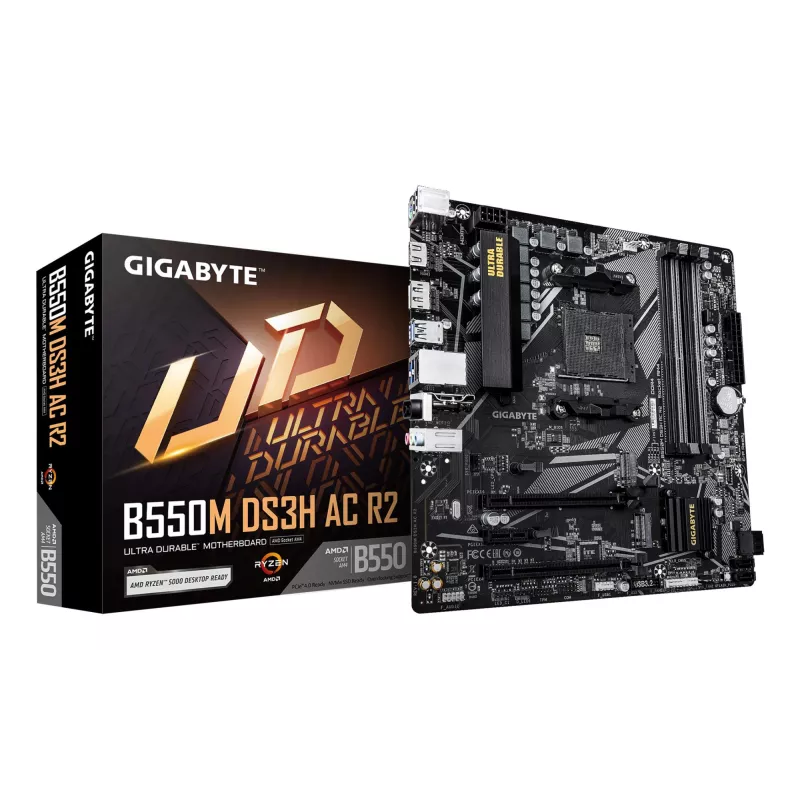 - GIGABYTE B550M DS3H AC R2 MOTHERBOARD - AMD RYZEN 5000 CPUS, 5+3 PHASES VRM, UP TO 4733MHZ DDR4 (O.C.), 1XPCIE 4.0 + 1XPCIE 3.0 M.2, WI-FI 5, 1GBE LAN, USB 3.2 GEN 1. PROCESSOR MANUFACTURER: AMD, PROCESSOR SOCKET: SOCKET AM4, COMPATIBLE PROCESSOR SERIES: