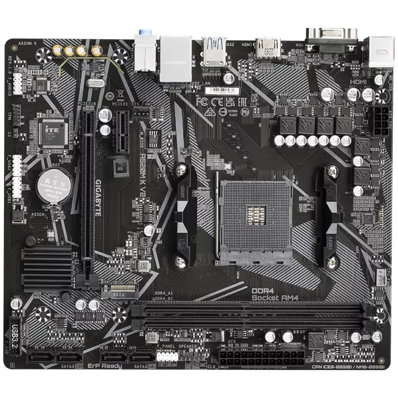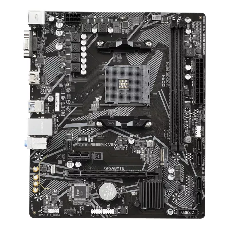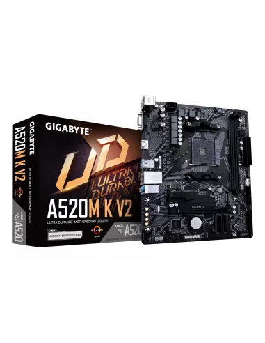GIGABYTE A520M K V2 MOTHERBOARD - SUPPORTS AMD RYZEN 5000 SERIES AM4 CPUS, UP TO 5100MHZ DDR4 (OC), PCIE GEN3 X4 M.2, GBE LAN, USB 3.2 GEN 1. PROCESSOR MANUFACTURER: AMD, PROCESSOR SOCKET: SOCKET AM4, COMPATIBLE PROCESSOR SERIES: AMD RYZEN 3000 SERIES, AM