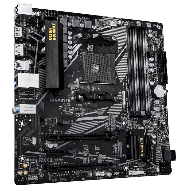 - GIGABYTE B550M DS3H R2 MOTHERBOARD - AMD RYZEN 5000 CPUS, 5+3 PHASES VRM, UP TO 4733MHZ DDR4 (O.C.), 1XPCIE 4.0 + 1XPCIE 3.0 M.2, 1GBE LAN, USB 3.2 GEN 1. PROCESSOR MANUFACTURER: AMD, PROCESSOR SOCKET: SOCKET AM4, COMPATIBLE PROCESSOR SERIES: AMD RYZEN 30